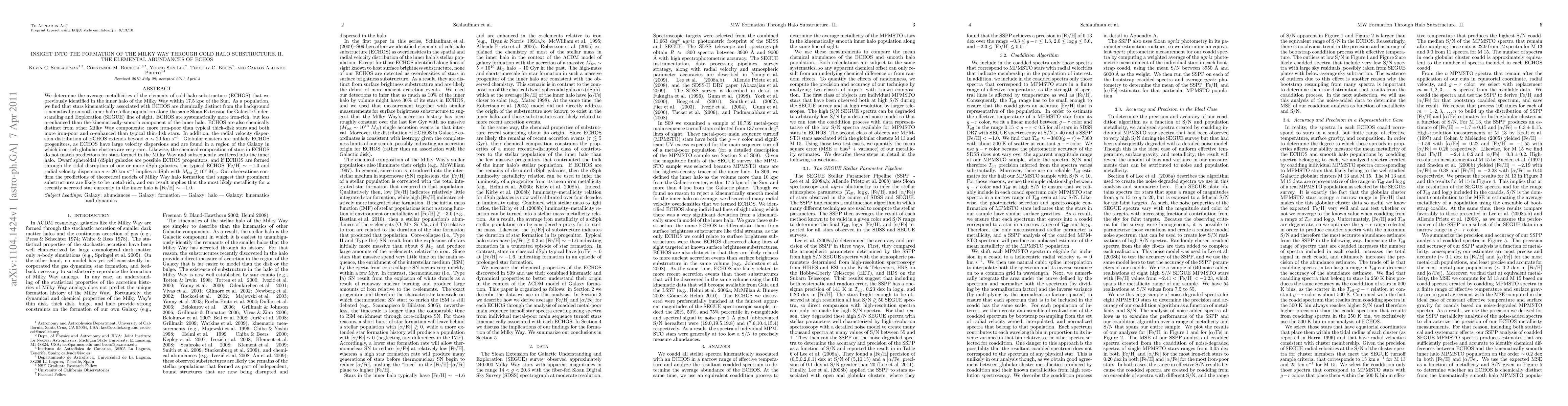 We determine the average metallicities of the elements of cold halo substructure (ECHOS) that we previously identified in the inner halo of the Milky Way within 17.5 kpc of the Sun. As a population, we find that stars kinematically associated with ECHOS are chemically distinct from the background kinematically smooth inner halo stellar population along the same Sloan Extension for Galactic Understanding and Exploration (SEGUE) line of sight. ECHOS are systematically more iron-rich, but less alpha-enhanced than the kinematically-smooth component of the inner halo. ECHOS are also chemically distinct from other Milky Way components: more iron-poor than typical thick-disk stars and both more iron-poor and alpha-enhanced than typical thin-disk stars. In addition, the radial velocity dispersion distribution of ECHOS extends beyond sigma ~ 20 km s^-1. Globular clusters are unlikely ECHOS progenitors, as ECHOS have large velocity dispersions and are found in a region of the Galaxy in which iron-rich globular clusters are very rare. Likewise, the chemical composition of stars in ECHOS do not match predictions for stars formed in the Milky Way and subsequently scattered into the inner halo. Dwarf spheroidal (dSph) galaxies are possible ECHOS progenitors, and if ECHOS are formed through the tidal disruption of one or more dSph galaxies, the typical ECHOS [Fe/H] ~ -1.0 and radial velocity dispersion sigma ~ 20 km s^-1 implies a dSph with M_tot >~ 10^9 M_Sun. Our observations confirm the predictions of theoretical models of Milky Way halo formation that suggest that prominent substructures are likely to be metal-rich, and our result implies that the most likely metallicity for a recently accreted star currently in the inner halo is [Fe/H] ~ -1.0.