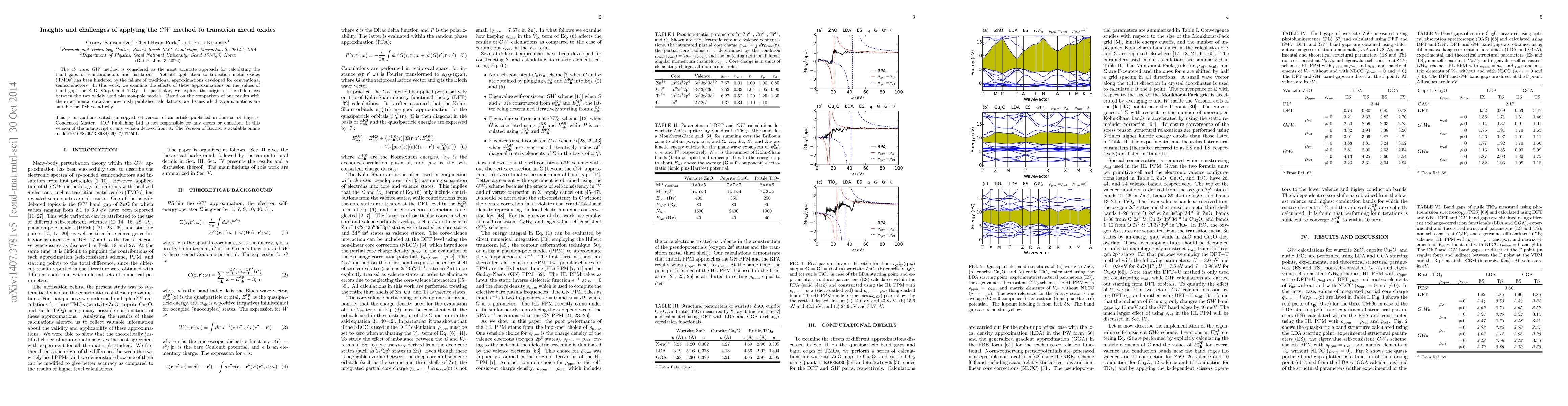The research examines the application of the GW method to transition metal oxides (TMOs), specifically ZnO, Cu2O, and TiO2, to calculate band gaps. It compares different approximations, including various exchange-correlation functionals, self-consistent schemes, and plasmon-pole models, against experimental data.
