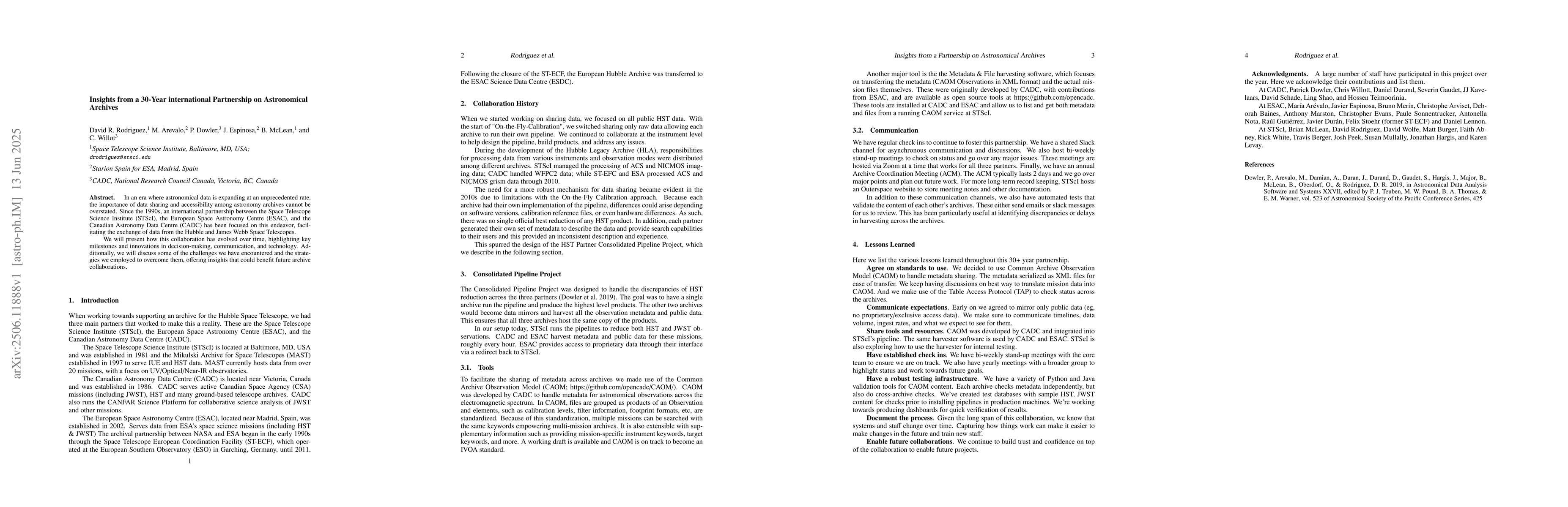 In an era where astronomical data is expanding at an unprecedented rate, the importance of data sharing and accessibility among astronomy archives cannot be overstated. Since the 1990s, an international partnership between the Space Telescope Science Institute (STScI), the European Space Astronomy Centre (ESAC), and the Canadian Astronomy Data Centre (CADC) has been focused on this endeavor, facilitating the exchange of data from the Hubble and James Webb Space Telescopes. We will present how this collaboration has evolved over time, highlighting key milestones and innovations in decision-making, communication, and technology. Additionally, we will discuss some of the challenges we have encountered and the strategies we employed to overcome them, offering insights that could benefit future archive collaborations.