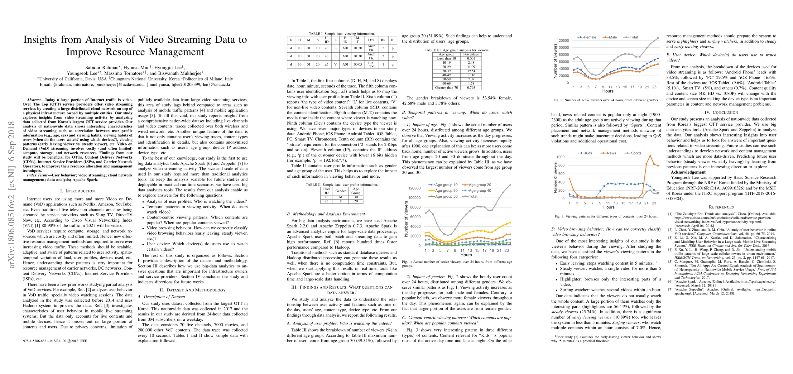 This study analyzes video streaming data from Korea's largest OTT service provider to uncover patterns in viewing habits and user profiles, aiming to improve resource management for OTTs, CDNs, ISPs, and Carrier Network Operators. Key findings include correlations between user demographics and viewing habits, and insights into viewing patterns that can optimize resource allocation.