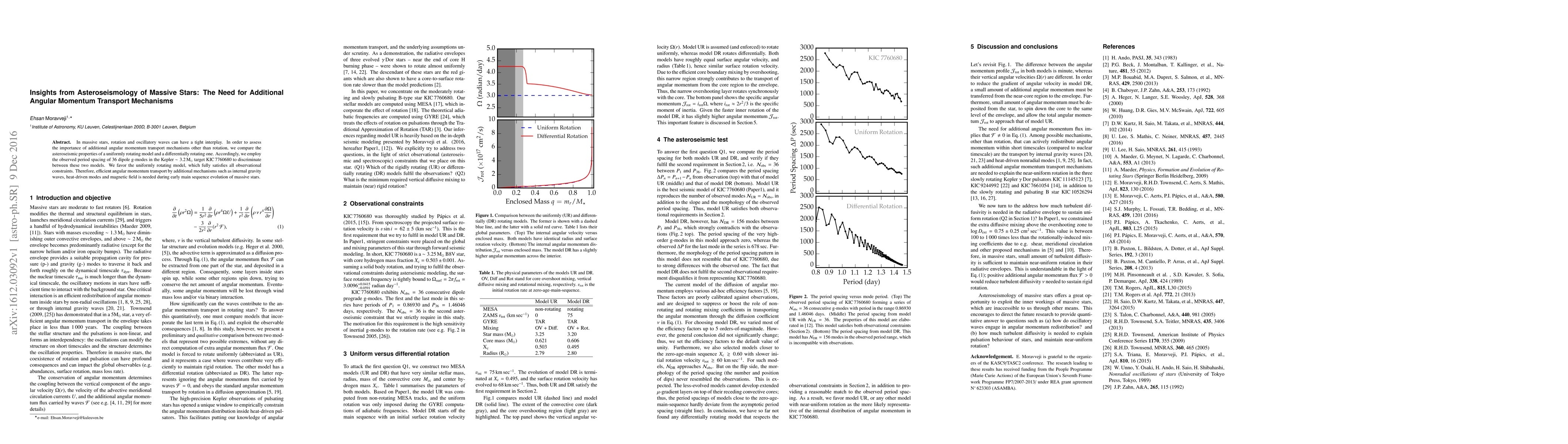 In massive stars, rotation and oscillatory waves can have a tight interplay. In order to assess the importance of additional angular momentum transport mechanisms other than rotation, we compare the asteroseismic properties of a uniformly rotating model and a differentially rotating one. Accordingly, we employ the observed period spacing of 36 dipole g-modes in the Kepler $\sim3.2$ M$_\odot$ target KIC 7760680 to discriminate between these two models. We favor the uniformly rotating model, which fully satisfies all observational constraints. Therefore, efficient angular momentum transport by additional mechanisms such as internal gravity waves, heat-driven modes and magnetic field is needed during early main sequence evolution of massive stars.