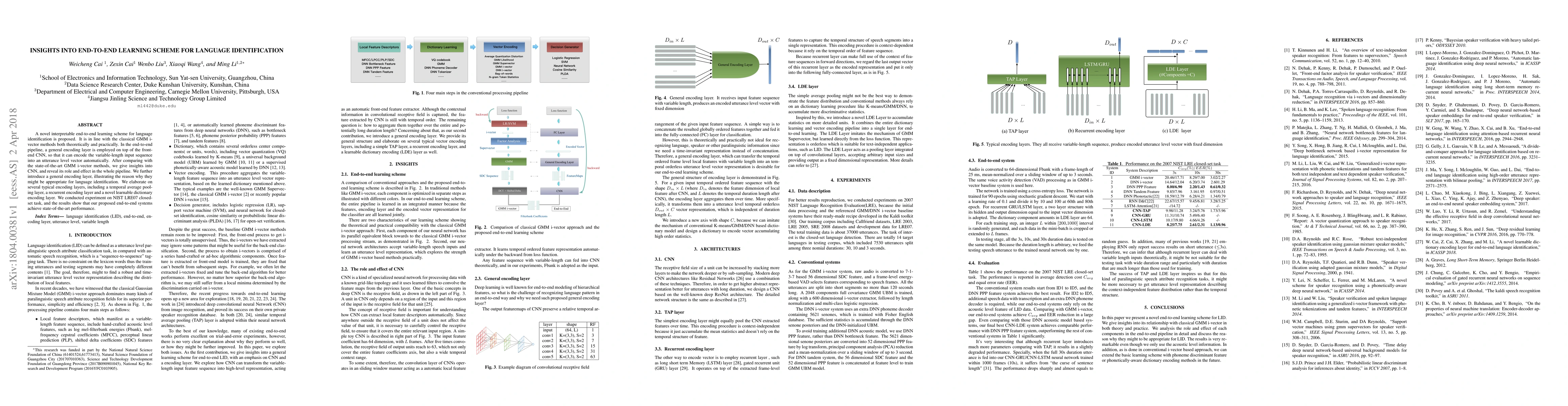 This paper proposes a novel end-to-end learning scheme for language identification using a CNN-based encoding layer, achieving state-of-the-art results on the NIST LRE07 task. The study compares the proposed method with traditional GMM i-vector approaches and highlights the effectiveness of CNNs in the language identification pipeline.