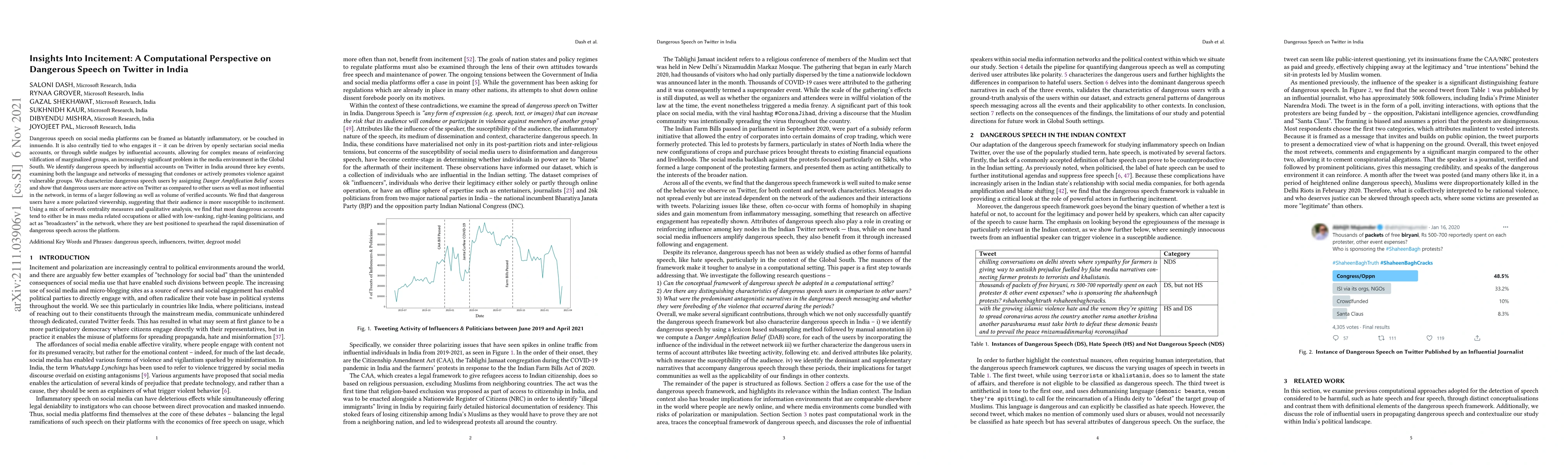 This paper examines dangerous speech on Twitter in India, identifying influential accounts that promote violence against marginalized groups. It finds that dangerous speech users are highly active and influential, often linked to mass media or low-ranking politicians, and play a key role in spreading harmful messages.