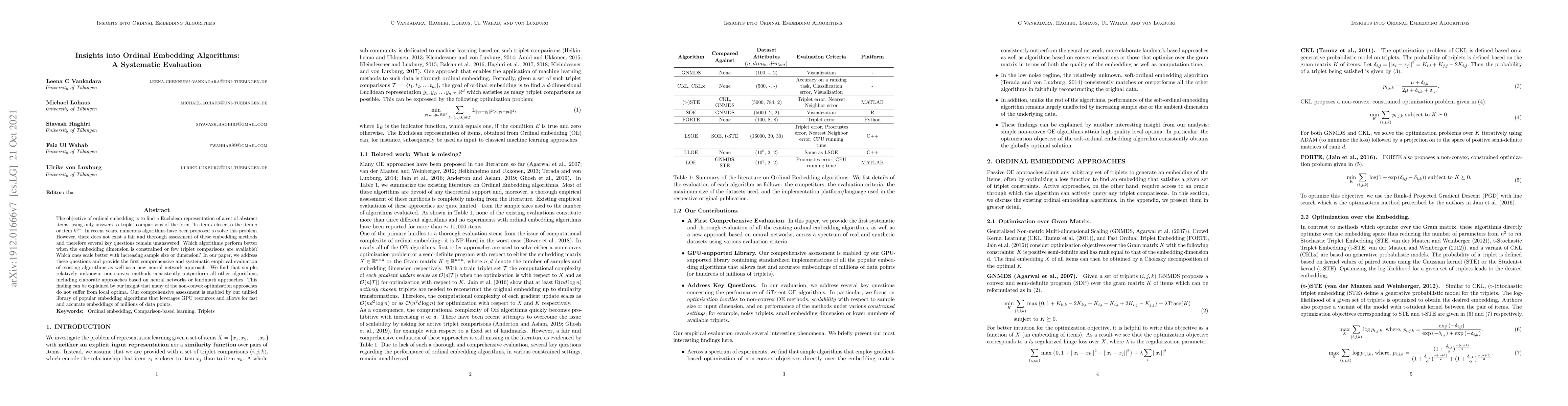 This paper conducts a systematic evaluation of ordinal embedding algorithms, finding that simple, non-convex methods outperform complex approaches, including neural networks, due to their ability to avoid local optima. The study also introduces a unified library for fast and accurate embeddings.