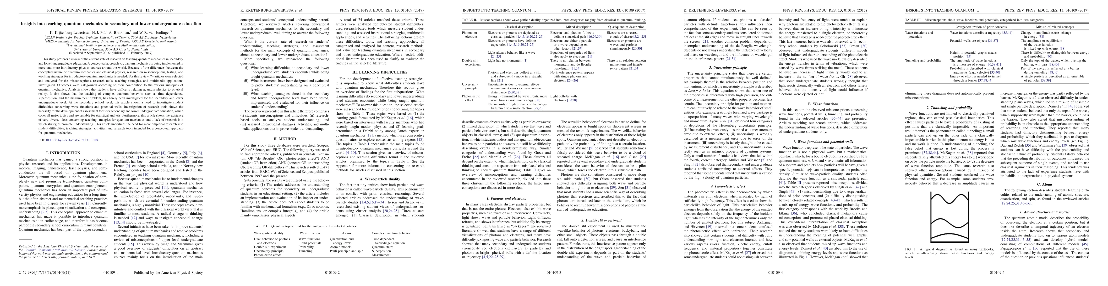 This study reviews research on teaching quantum mechanics in secondary and lower undergraduate levels, highlighting student misconceptions and the need for better assessment tools and teaching strategies. It finds a lack of investigation into complex quantum behaviors and diverse teaching strategies, stressing the need for more empirical research.
