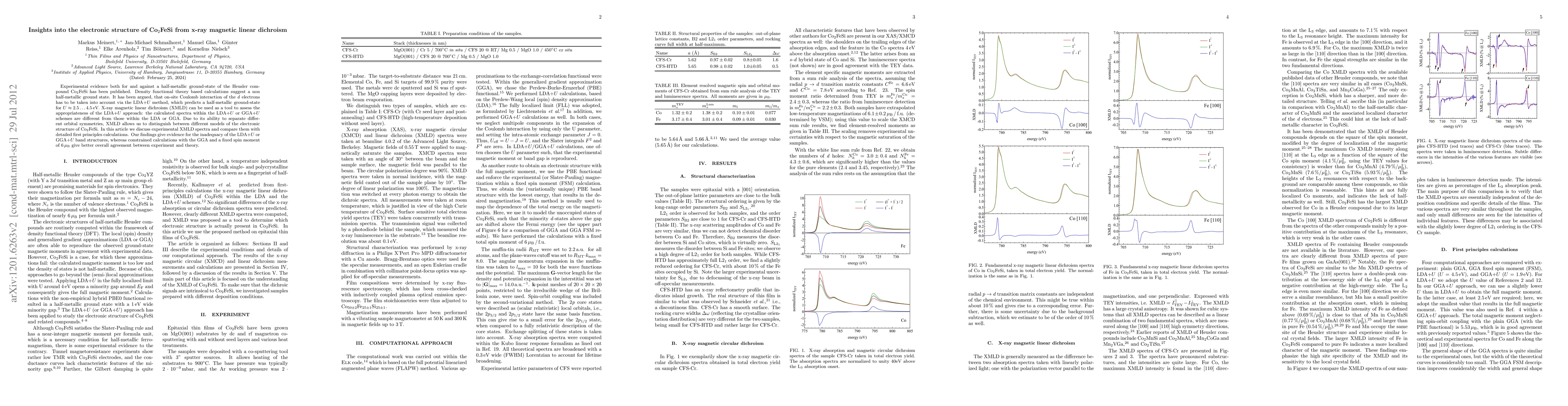 This paper uses x-ray magnetic linear dichroism (XMLD) to investigate the electronic structure of Co2FeSi, finding that LDA+U and GGA+U models are inadequate. Instead, GGA calculations with a fixed spin moment of 6 μB provide better agreement with experimental data.