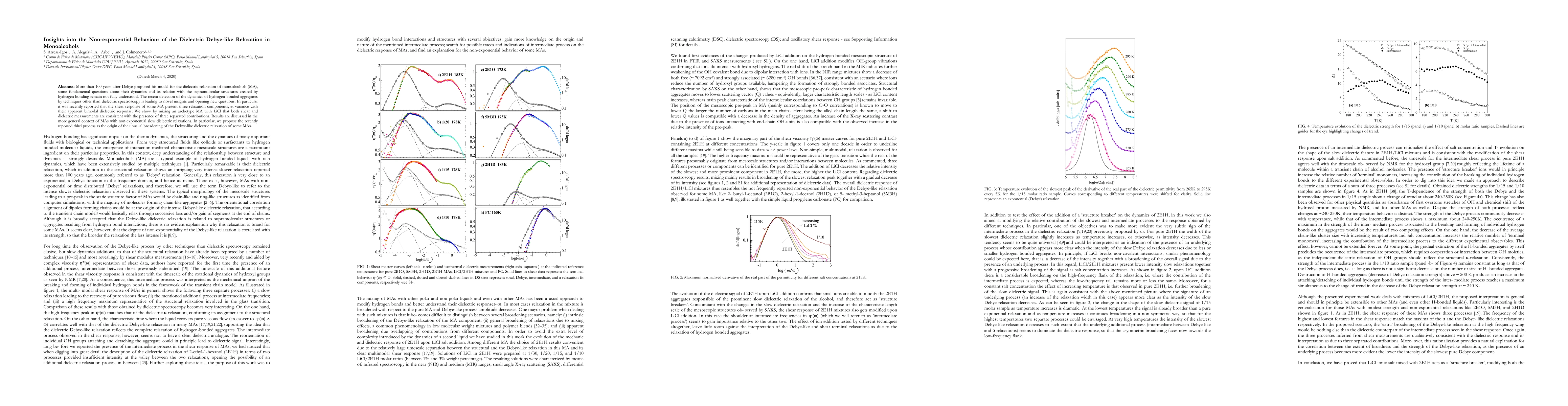 More than 100 years after Debye proposed his model for the dielectric relaxation of monoalcohols (MA), some fundamental questions about their dynamics and its relation with the supramolecular structures created by hydrogen bonding remain not fully understood. The recent detection of the dynamics of hydrogen-bonded aggregates by techniques other than dielectric spectroscopy is leading to novel insights and opening new questions. In particular it was recently reported that the shear response of some MA present three relaxation components, at variance with their apparent bimodal dielectric response. We show by mixing an archetype MA with LiCl that both shear and dielectric measurements are consistent with the presence of three separated contributions. Results are discussed in the more general context of MAs with non-exponential slow dielectric relaxations. In particular, we propose the recently reported third process as the origin of the unusual broadening of the Debye-like dielectric relaxation of some MAs.