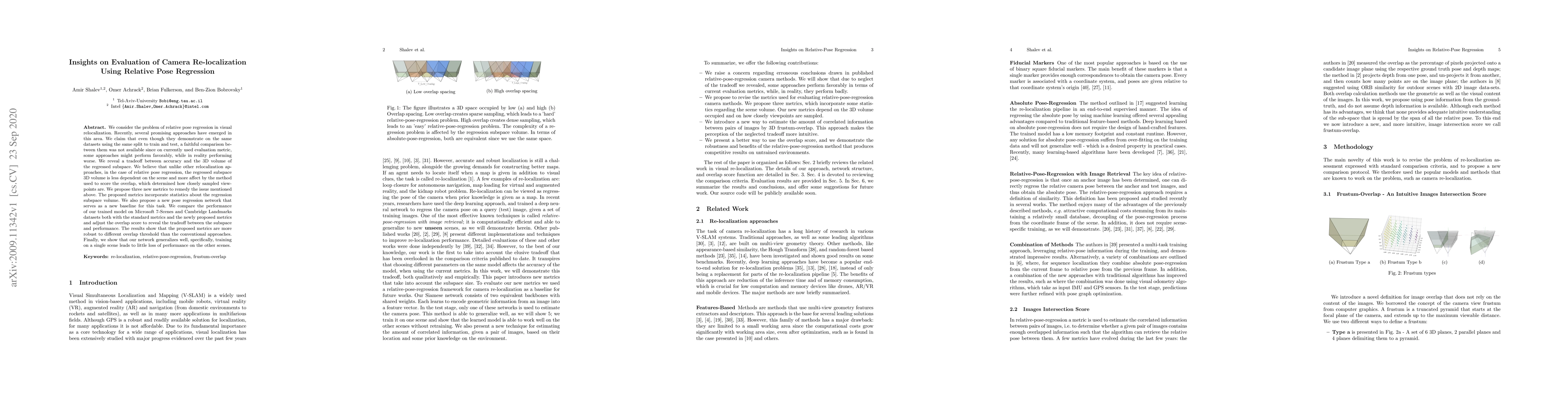 This paper addresses a key challenge in camera re-localization: evaluating the performance of relative pose regression methods. It proposes new metrics to measure subspace volume and presents a new baseline model that generalizes well across different scenes.