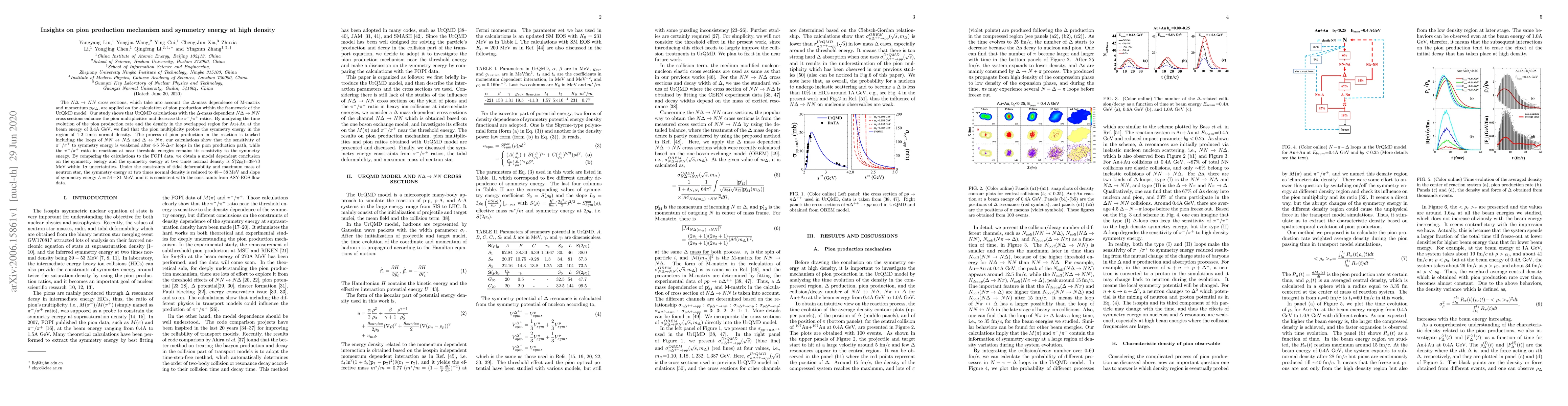 The $N\Delta\to NN$ cross sections, which take into account the $\Delta$-mass dependence of M-matrix and momentum $p_{N\Delta}$, are applied on the calculation of pion production within the framework of the UrQMD model. Our study shows that UrQMD calculations with the $\Delta$-mass dependent $N\Delta\to NN$ cross sections enhance the pion multiplicities and decrease the $\pi^-/\pi^+$ ratios. By analyzing the time evolution of the pion production rate and the density in the overlapped region for Au+Au at the beam energy of 0.4A GeV, we find that the pion multiplicity probes the symmetry energy in the region of 1-2 times normal density. The process of pion production in the reaction is tracked including the loops of $NN\leftrightarrow N\Delta$ and $\Delta\leftrightarrow N\pi$, our calculations show that the sensitivity of $\pi^-/\pi^+$ to symmetry energy is weakened after 4-5 N-$\Delta$-$\pi$ loops in the pion production path, while the $\pi^{-}/\pi^{+}$ ratio in reactions at near threshold energies remains its sensitivity to the symmetry energy. By comparing the calculations to the FOPI data, we obtain a model dependent conclusion on the symmetry energy and the symmetry energy at two times normal density is $S(2\rho_0)$=38-73 MeV within $1\sigma$ uncertainties. Under the constraints of tidal deformability and maximum mass of neutron star, the symmetry energy at two times normal density is reduced to $48-58$ MeV and slope of symmetry energy $L=54-81$ MeV, and it is consistent with the constraints from ASY-EOS flow data.