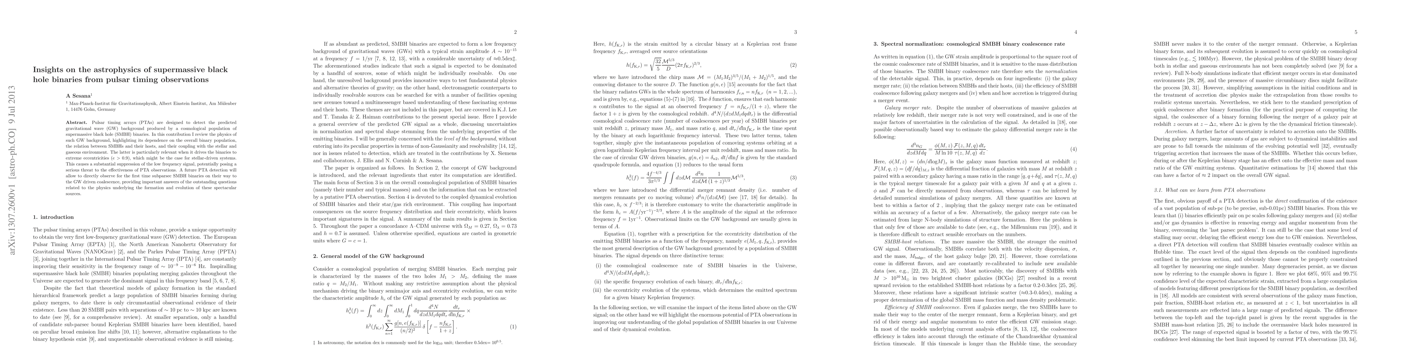 Pulsar timing arrays (PTAs) are designed to detect the predicted gravitational wave (GW) background produced by a cosmological population of supermassive black hole (SMBH) binaries. In this contribution I review the physics of such GW background, highlighting its dependence on the overall binary population, the relation between SMBHs and their hosts, and their coupling with the stellar and gaseous environment. The latter is particularly relevant when it drives the binaries to extreme eccentricities (e>0.9), which might be the case for stellar-driven systems. This causes a substantial suppression of the low frequency signal, potentially posing a serious threat to the effectiveness of PTA observations. A future PTA detection will allow to directly observe for the first time subparsec SMBH binaries on their way to the GW driven coalescence, providing important answers of the outstanding questions related to the physics underlying the formation and evolution of these spectacular sources.