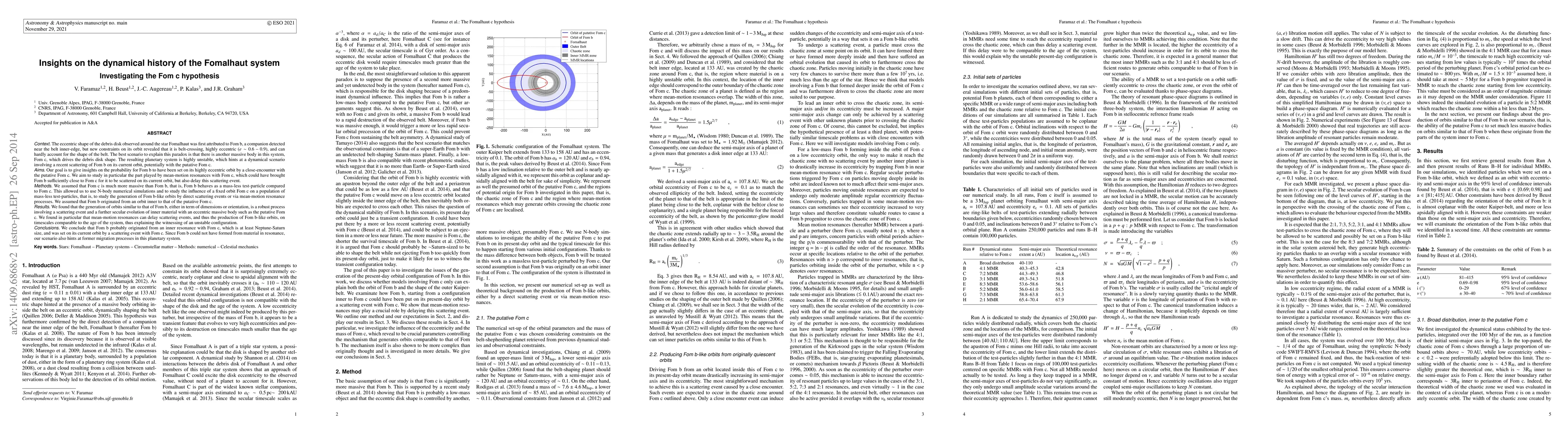 Researchers suggest Fomalhaut system's debris disk shape is caused by a massive, yet undiscovered planet (Fom c), which scattered companion b on its current highly eccentric orbit.