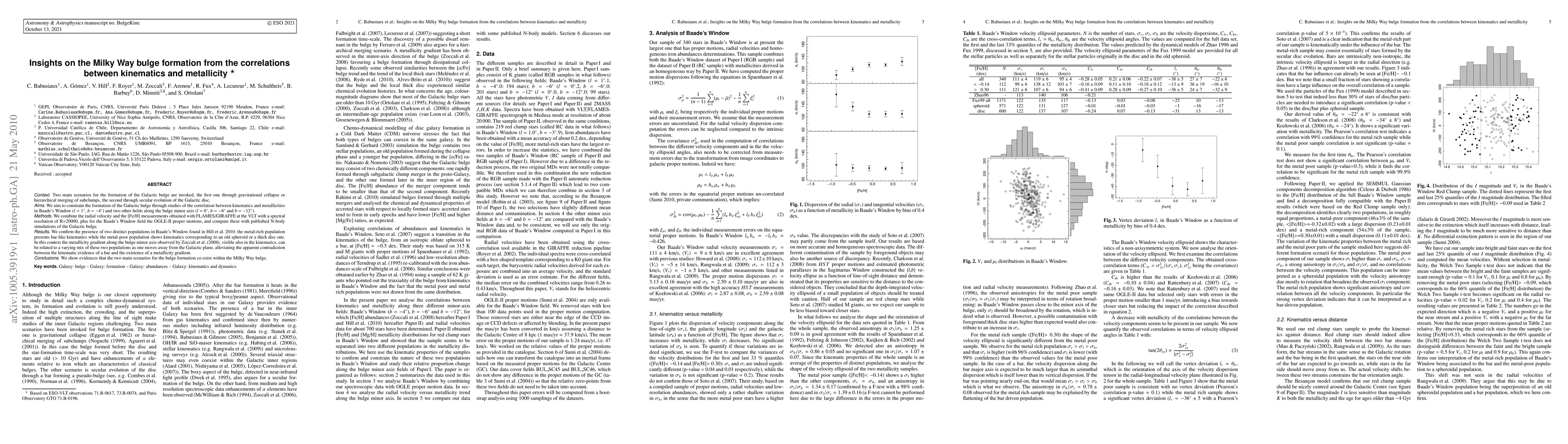 This paper investigates the formation of the Milky Way bulge by analyzing correlations between kinematics and metallicity in three fields, finding evidence for both gravitational collapse and secular evolution scenarios. The study reveals distinct populations with different kinematics and metallicities, suggesting a mix of formation processes.