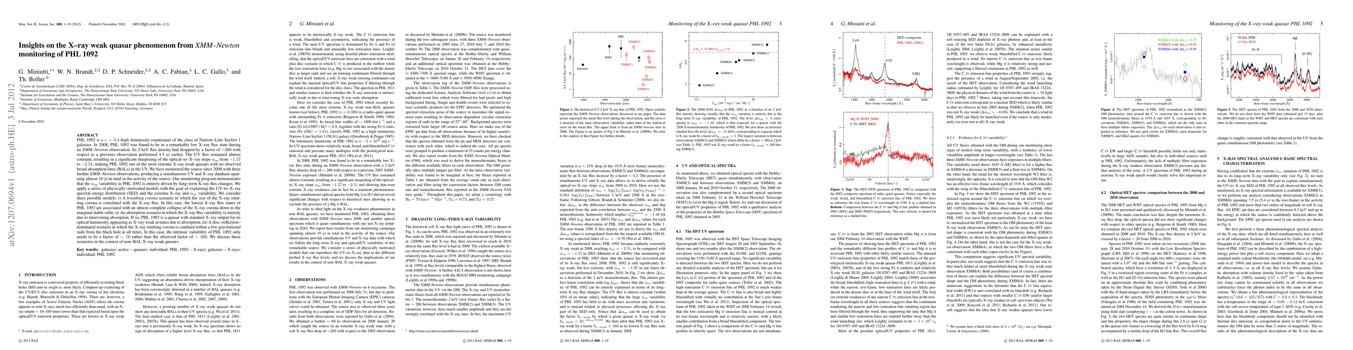 PHL 1092 is a z~0.4 high-luminosity counterpart of the class of Narrow-Line Seyfert 1 galaxies. In 2008, PHL 1092 was found to be in a remarkably low X-ray flux state during an XMM-Newton observation. Its 2 keV flux density had dropped by a factor of ~260 with respect to a previous observation performed 4.5 yr earlier. The UV flux remained almost constant, resulting in a significant steepening of the optical-to-X-ray slope alpha_ox from -1.57 to -2.51, making PHL 1092 one of the most extreme X-ray weak quasars with no observed broad absorption lines (BALs) in the UV. We have monitored the source since 2008 with three further XMM-Newton observations, producing a simultaneous UV and X-ray database spanning almost 10 yr in total in the activity of the source. Our monitoring program demonstrates that the alpha_ox variability in PHL 1092 is entirely driven by long-term X-ray flux changes. We apply a series of physically-motivated models with the goal of explaining the UV-to-X-ray spectral energy distribution (SED) and the extreme X-ray and alpha_ox variability. We consider three possible models: i) A "breathing corona" scenario in which the size of the X-ray emitting corona is correlated with the X-ray flux. In this case, the lowest X-ray flux states of PHL 1092 are associated with an almost complete collapse of the X-ray corona down to the marginal stable orbit; ii) An absorption scenario in which the X-ray flux variability is entirely due to intervening absorption. If so, PHL 1092 is a quasar with standard X-ray output for its optical luminosity, appearing as X-ray weak at times due to absorption; iii) A disc-reflection-dominated scenario in which the X-ray emitting corona is confined within a few gravitational radii from the black hole at all times. In this case, the intrinsic variability of PHL 1092 only needs to be a factor of ~10 rather than the observed factor of ~260.