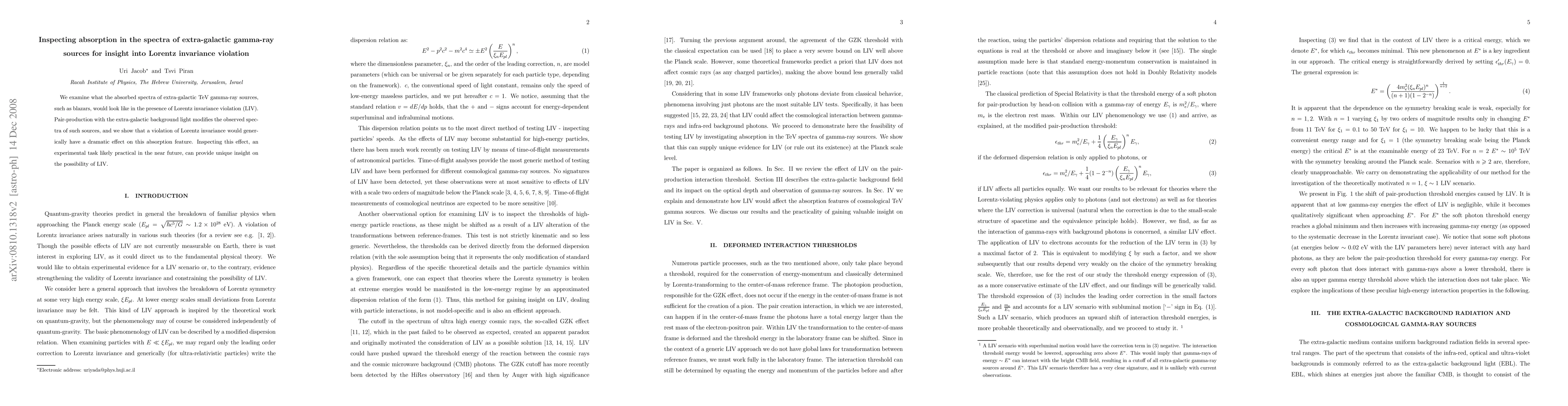 This paper investigates the impact of Lorentz invariance violation (LIV) on the absorbed spectra of extra-galactic TeV gamma-ray sources, such as blazars, revealing that LIV could significantly alter the absorption features caused by pair-production with the extra-galactic background light. Such experimental scrutiny, potentially feasible soon, may offer unique insights into the possibility of LIV.