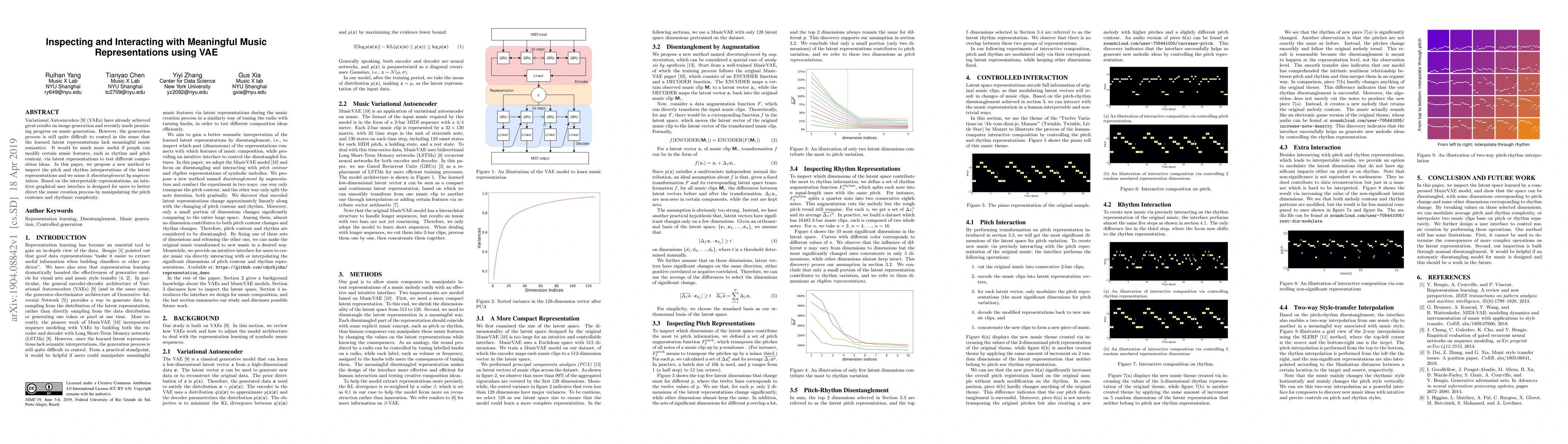 Variational Autoencoders(VAEs) have already achieved great results on image generation and recently made promising progress on music generation. However, the generation process is still quite difficult to control in the sense that the learned latent representations lack meaningful music semantics. It would be much more useful if people can modify certain music features, such as rhythm and pitch contour, via latent representations to test different composition ideas. In this paper, we propose a new method to inspect the pitch and rhythm interpretations of the latent representations and we name it disentanglement by augmentation. Based on the interpretable representations, an intuitive graphical user interface is designed for users to better direct the music creation process by manipulating the pitch contours and rhythmic complexity.