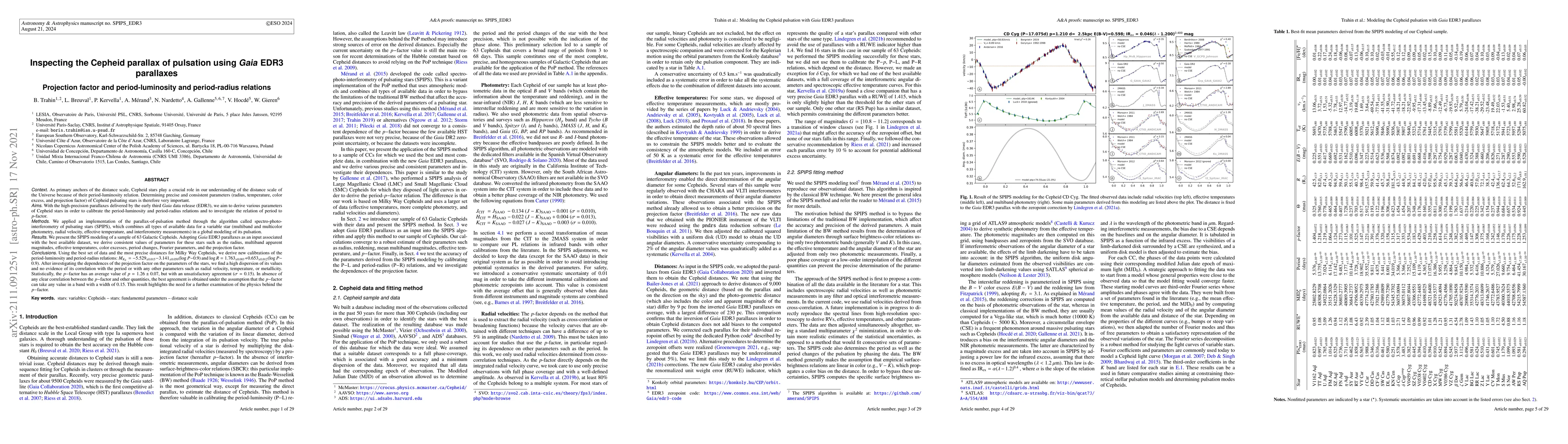 This paper uses Gaia EDR3 parallaxes to derive parameters for 63 Cepheid stars, employing the SPIPS modeling method to calibrate period-luminosity and period-radius relations. The study finds high dispersion in the projection factor (p-factor) with no clear correlation, suggesting a need for further investigation into its underlying physics.