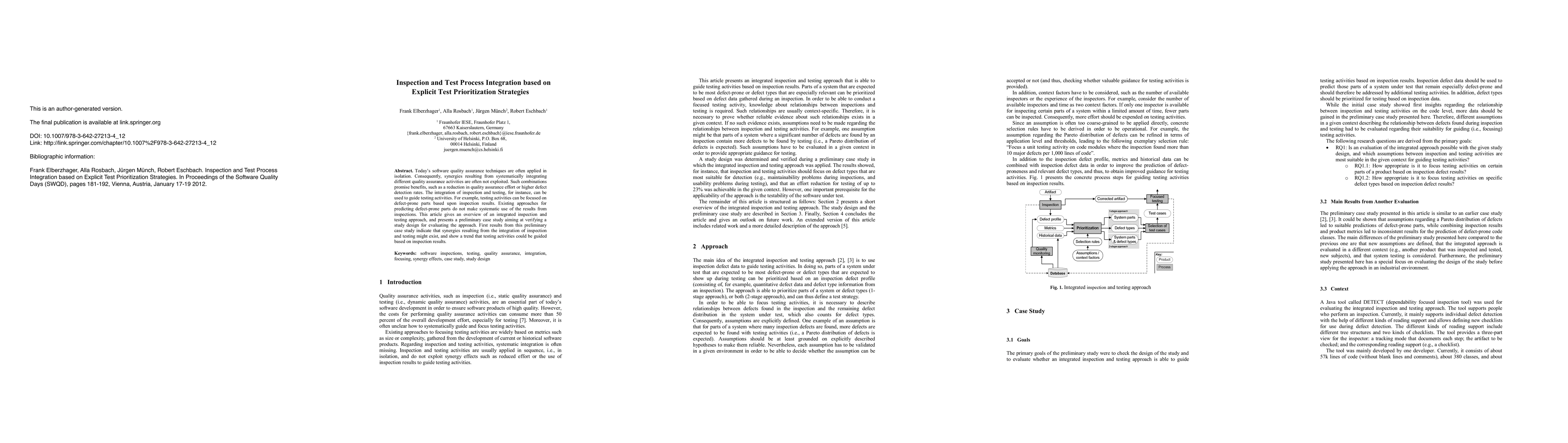 Today's software quality assurance techniques are often applied in isolation. Consequently, synergies resulting from systematically integrating different quality assurance activities are often not exploited. Such combinations promise benefits, such as a reduction in quality assurance effort or higher defect detection rates. The integration of inspection and testing, for instance, can be used to guide testing activities. For example, testing activities can be focused on defect-prone parts based upon inspection results. Existing approaches for predicting defect-prone parts do not make systematic use of the results from inspections. This article gives an overview of an integrated inspection and testing approach, and presents a preliminary case study aiming at verifying a study design for evaluating the approach. First results from this preliminary case study indicate that synergies resulting from the integration of inspection and testing might exist, and show a trend that testing activities could be guided based on inspection results.