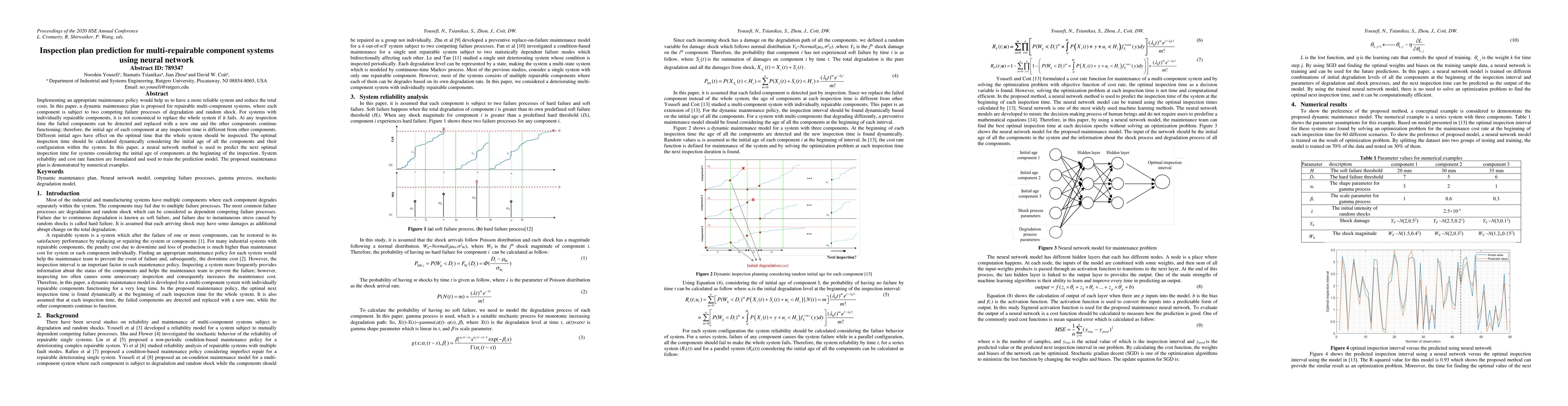 This paper proposes a dynamic maintenance plan for repairable multi-component systems using a neural network to predict optimal inspection times based on component initial ages and configurations. The model aims to enhance system reliability and reduce costs by replacing failed components rather than the entire system.