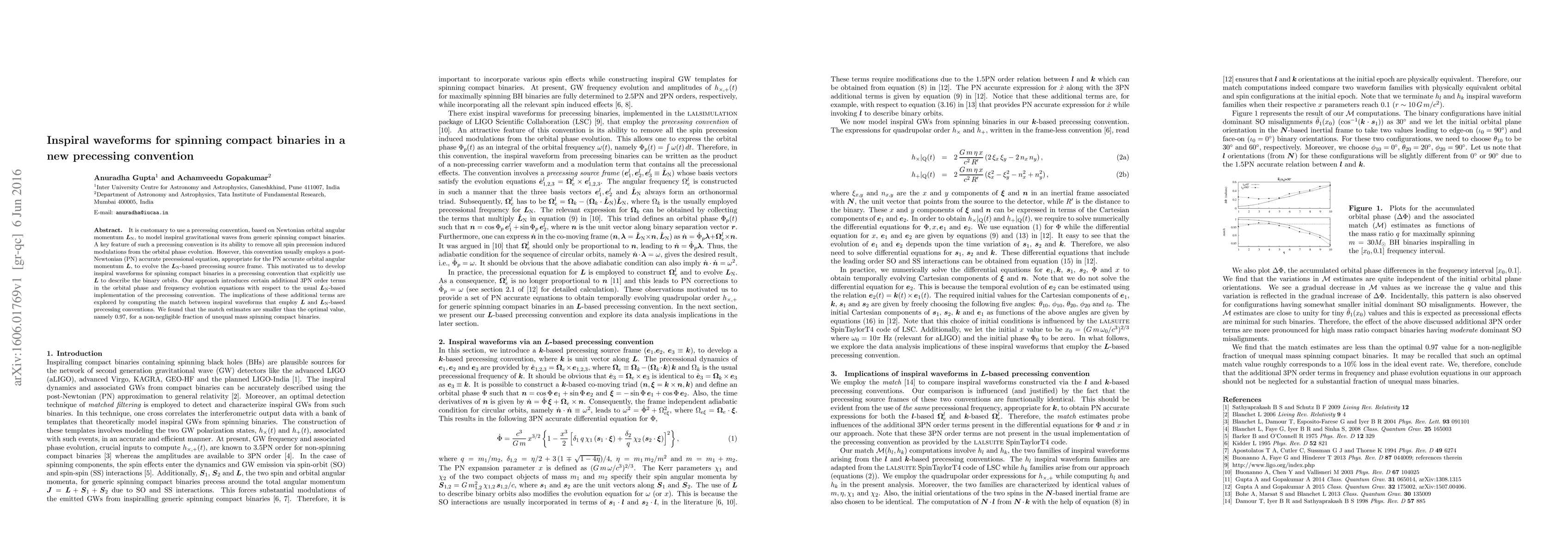 This paper develops new inspiral waveforms for spinning compact binaries using a precessing convention based on the orbital angular momentum ${\bf L}$ instead of the Newtonian angular momentum ${\bf L}_{\rm N}$. The new approach introduces additional 3PN order terms, resulting in a smaller match compared to the ${\bf L}_{\rm N}$-based convention for a significant portion of unequal mass binaries.