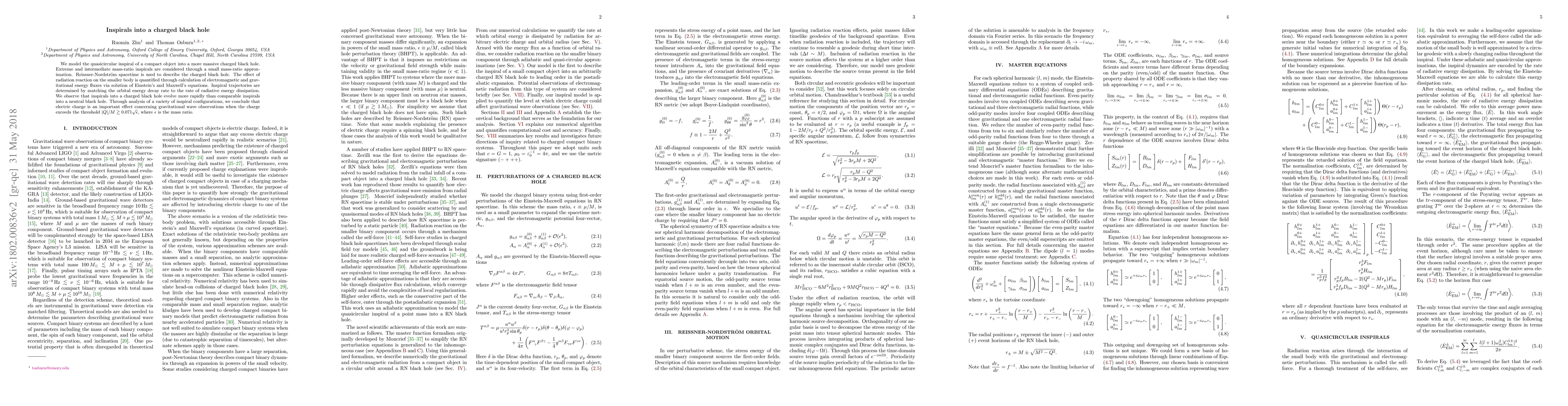This paper models the inspiral of a compact object into a charged black hole using the Reissner-Nordström spacetime, finding that charged black holes cause faster inspirals due to electromagnetic effects. It concludes that gravitational wave observations are significantly influenced by the black hole's charge when the charge exceeds a specific threshold relative to the mass ratio.