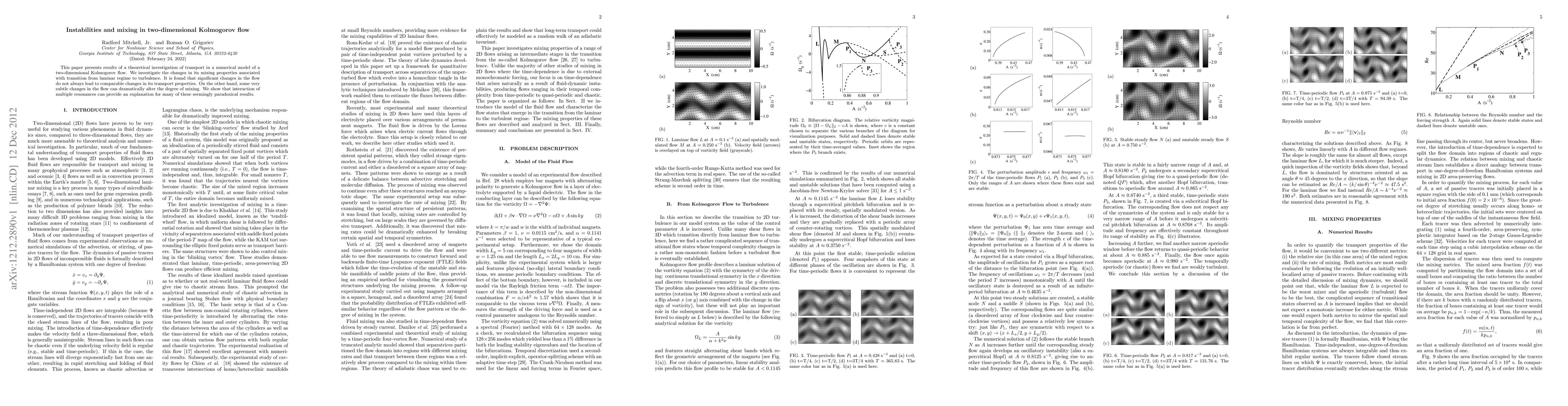 Researchers investigated changes in mixing properties of a two-dimensional Kolmogorov flow transitioning from laminar to turbulent regimes, finding subtle changes can dramatically alter mixing levels.
