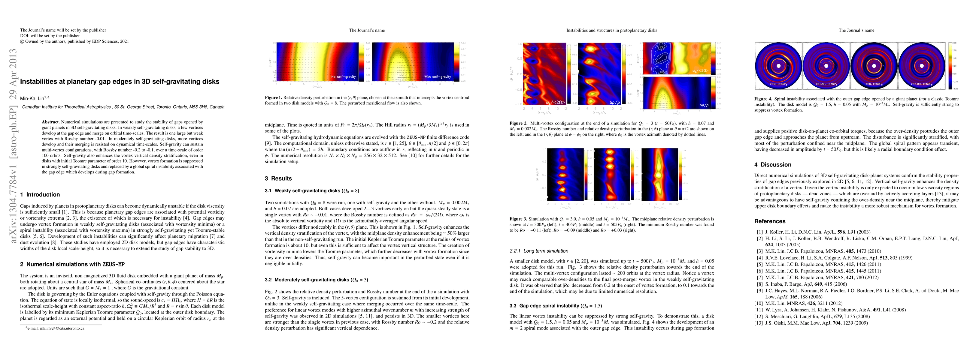 The study extends 2D gap stability analyses to 3D using numerical simulations, providing insights into the role of self-gravity in vortex formation and sustainability at planetary gap edges.