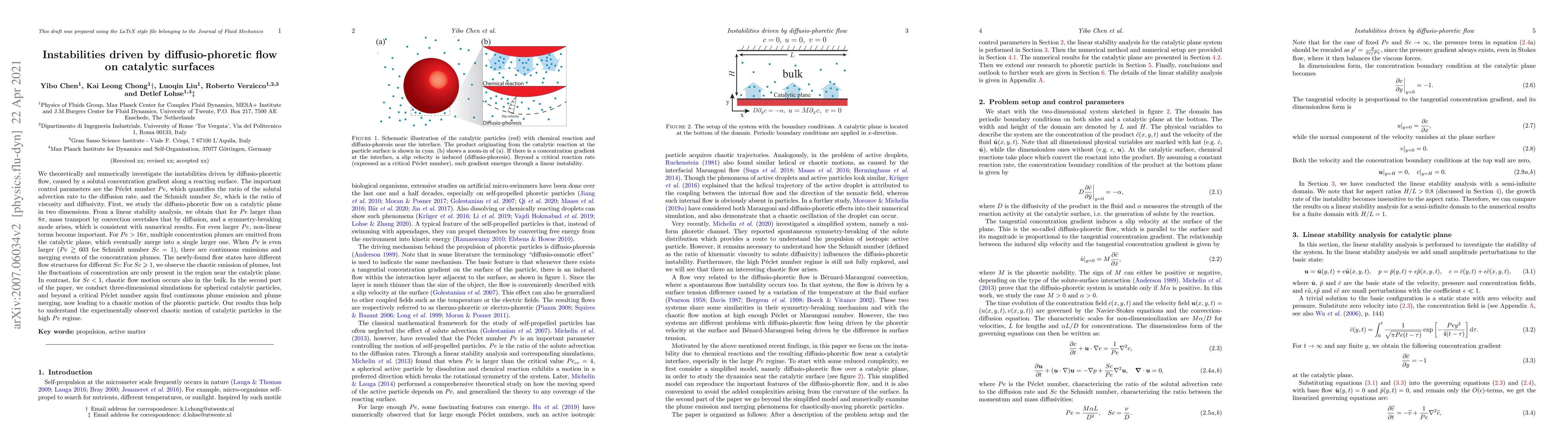 Researchers investigated instabilities driven by diffusiophoretic flow on catalytic surfaces, finding a critical Peclet number beyond which chaotic motion occurs in three-dimensional simulations.