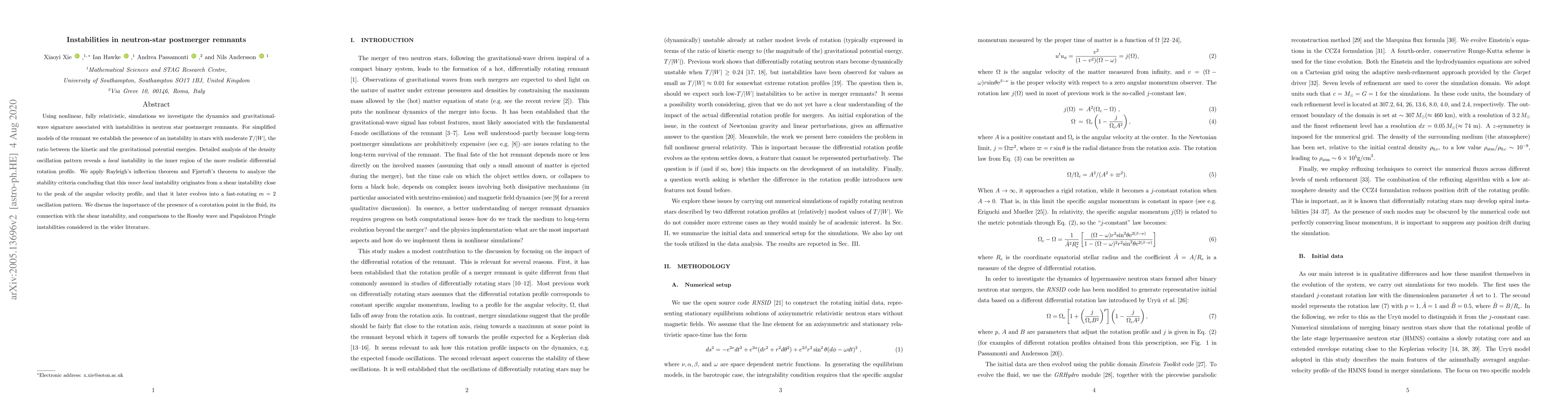 Research investigates instabilities in neutron star postmerger remnants using nonlinear simulations, revealing a local instability that evolves into fast-rotating oscillations.