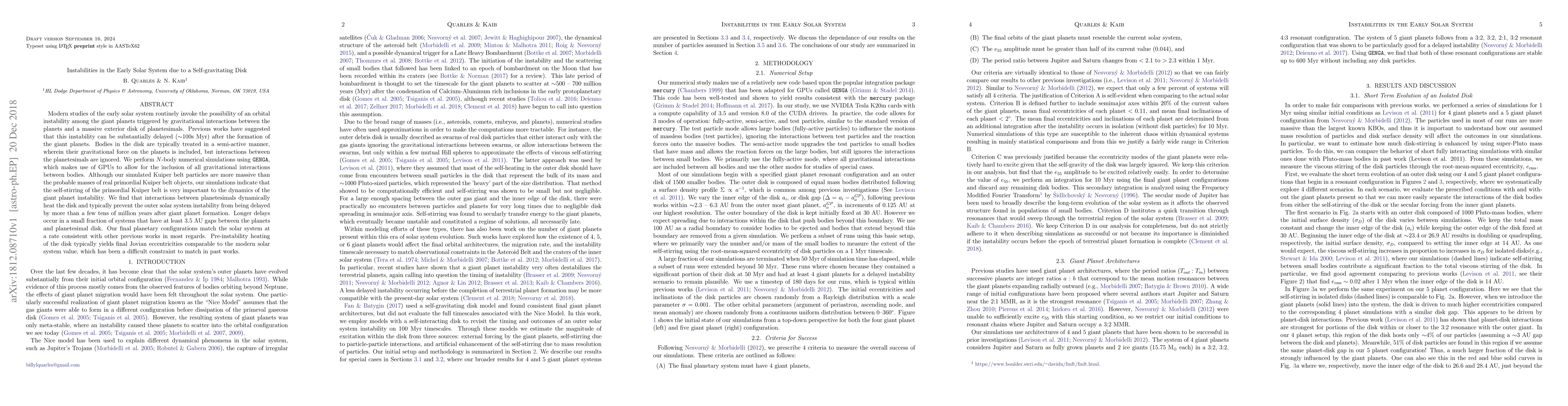 This study uses $N$-body simulations to investigate the early solar system's instability driven by interactions between giant planets and a planetesimal disk. The research finds that self-gravitational interactions within the disk significantly reduce the delay of giant planet instability, typically preventing delays beyond a few tens of million years.