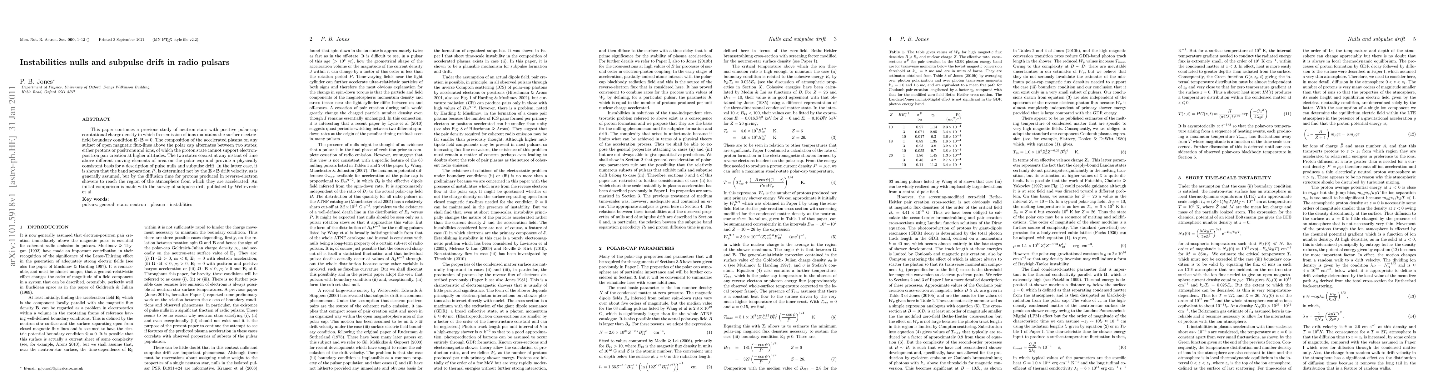 This paper continues a previous study of neutron stars with positive polar-cap corotational charge density in which free emission of ions maintains the surface electric-field boundary condition E.B = 0. The composition of the accelerated plasma on any subset of open magnetic flux-lines above the polar cap alternates between two states; either protons or positrons and ions, of which the proton state cannot support electron-positron pair creation at higher altitudes. The two states coexist at any instant of time above different moving elements of area on the polar cap and provide a physically consistent basis for a description of pulse nulls and sub-pulse drift. In the latter case, it is shown that the band separation P3 is determined not by the ExB drift velocity, as is generally assumed, but by the diffusion time for protons produced in reverse-electron showers to reach the region of the atmosphere from which they are accelerated. An initial comparison is made with the survey of sub-pulse drift published by Weltevrede et al.