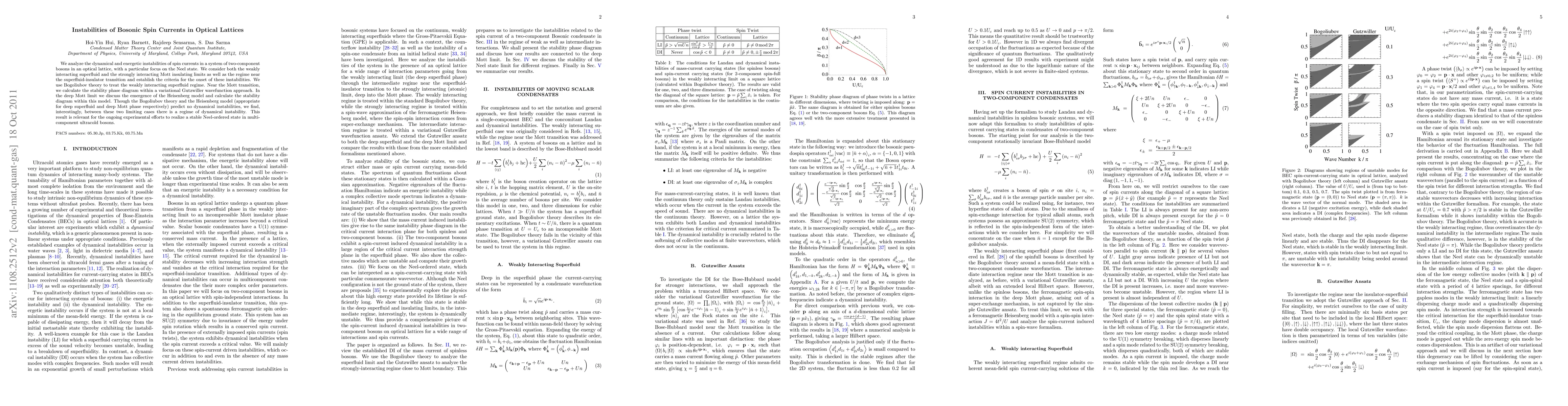 We analyze the dynamical and energetic instabilities of spin currents in a system of two-component bosons in an optical lattice, with a particular focus on the Neel state. We consider both the weakly interacting superfluid and the strongly interacting Mott insulating limits as well as the regime near the superfluid-insulator transition and establish the criteria for the onset of these instabilities. We use Bogoliubov theory to treat the weakly interacting superfluid regime. Near the Mott transition, we calculate the stability phase diagram within a variational Gutzwiller wavefunction approach. In the deep Mott limit we discuss the emergence of the Heisenberg model and calculate the stability diagram within this model. Though the Bogoliubov theory and the Heisenberg model (appropriate for deep superfluid and deep Mott phase respectively) predict no dynamical instabilities, we find, interestingly, between these two limiting cases there is a regime of dynamical instability. This result is relevant for the ongoing experimental efforts to realize a stable Neel-ordered state in multi-component ultracold bosons.