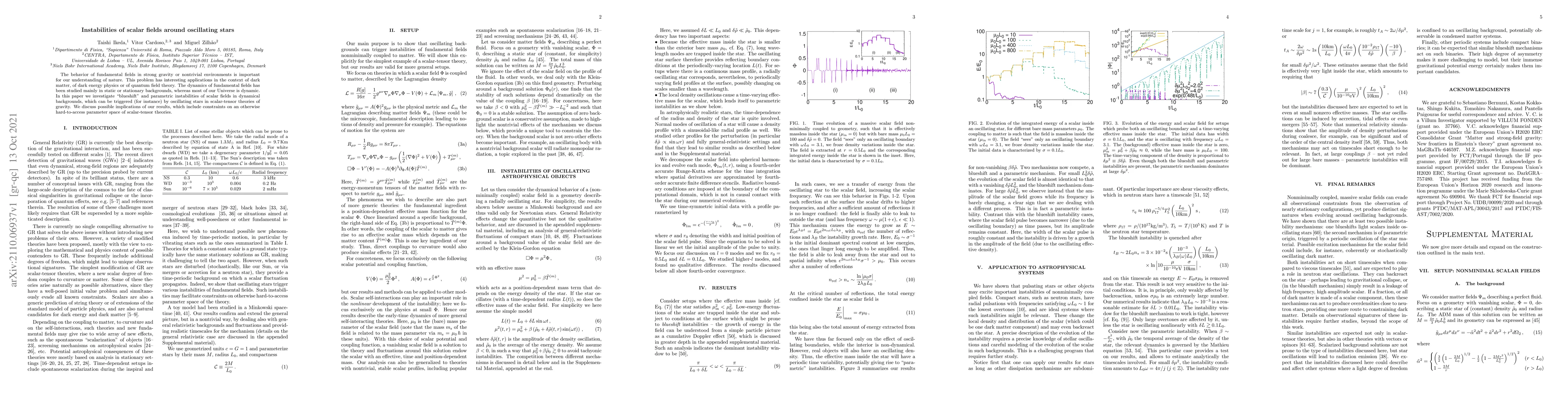This paper examines "blueshift" and parametric instabilities of scalar fields in dynamic backgrounds caused by oscillating stars, offering insights into fundamental field dynamics in non-static environments and implications for scalar-tensor theories of gravity, including constraints on their parameter space.