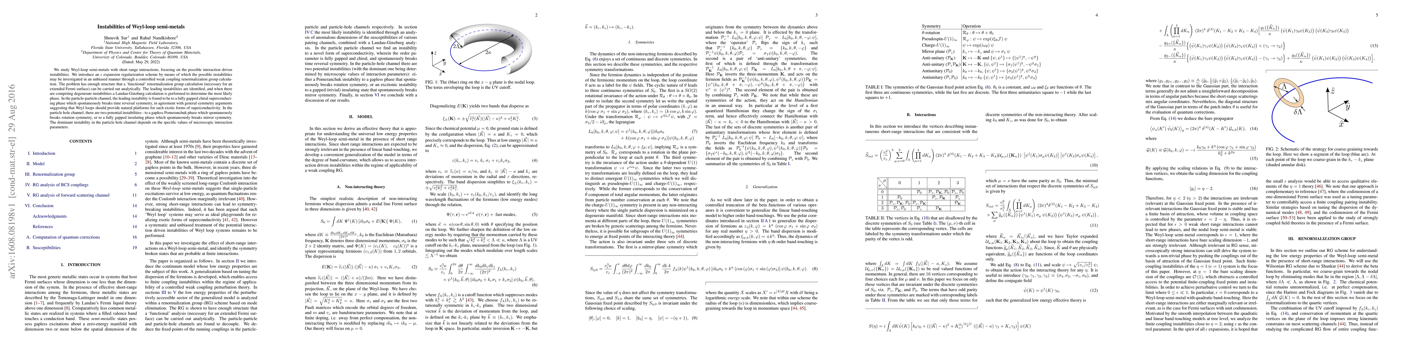 We study Weyl-loop semi-metals with short range interactions, focusing on the possible interaction driven instabilities. We introduce an $\epsilon$ expansion regularization scheme by means of which the possible instabilities may be investigated in an unbiased manner through a controlled weak coupling renormalization group calculation. The problem has enough structure that a `functional' renormalization group calculation (necessary for an extended Fermi surface) can be carried out analytically. The leading instabilities are identified, and when there are competing degenerate instabilities a Landau-Ginzburg calculation is performed to determine the most likely phase. In the particle-particle channel, the leading instability is found to be to a fully gapped chiral superconducting phase which spontaneously breaks time reversal symmetry, in agreement with general symmetry arguments suggesting that Weyl loops should provide natural platforms for such exotic forms of superconductivity. In the particle hole channel, there are two potential instabilities - to a gapless Pomeranchuk phase which spontaneously breaks rotation symmetry, or to a fully gapped insulating phase which spontaneously breaks mirror symmetry. The dominant instability in the particle hole channel depends on the specific values of microscopic interaction parameters.