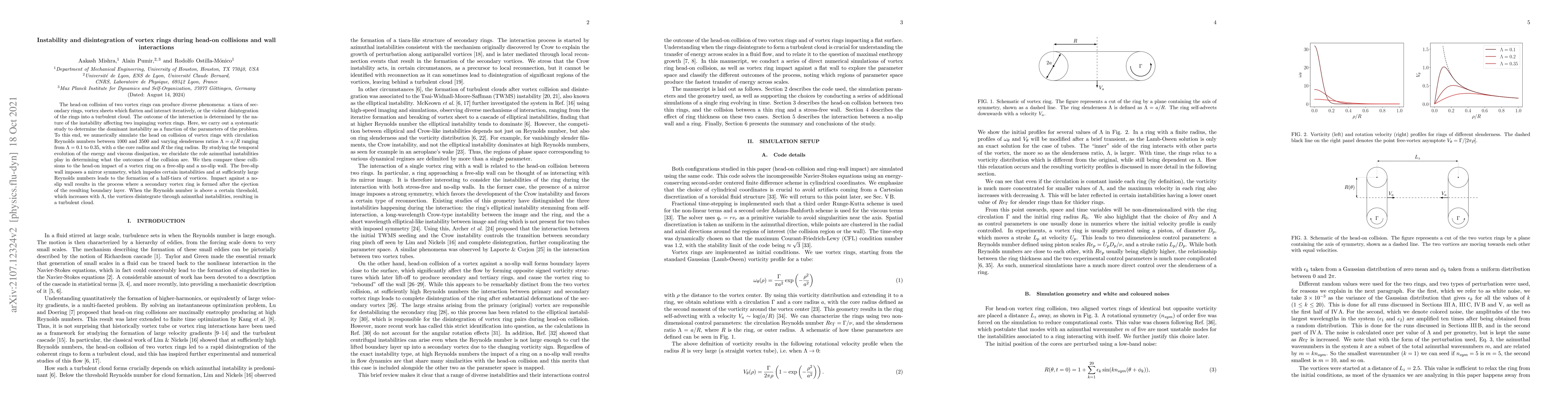 Researchers studied the instability of vortex rings during head-on collisions and wall interactions, finding that azimuthal instabilities lead to violent disintegration at high Reynolds numbers.