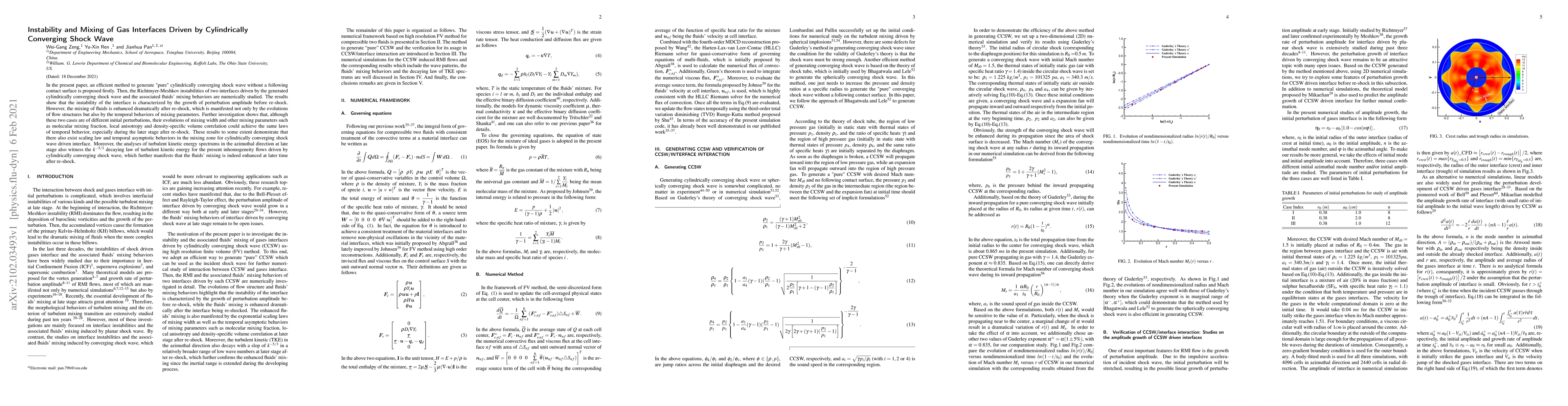 Researchers developed a method to generate cylindrically converging shock waves without contact surfaces, then studied instability and fluid mixing behaviors in interfaces driven by these waves, finding enhanced mixing after re-shock with similar temporal behaviors for different initial perturbations.