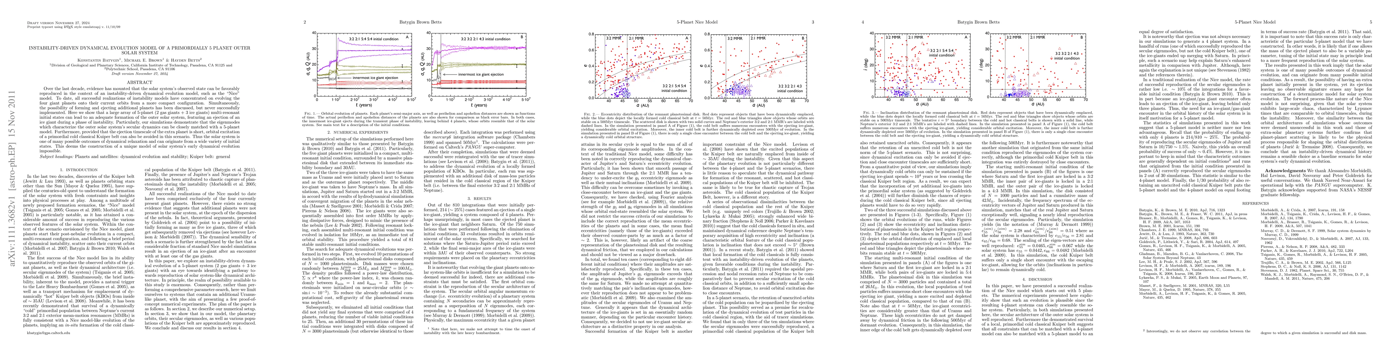 The paper presents a successful realization of the Nice model starting with 5 planets, demonstrating that such an evolution is plausible and can result in a 4-planet system resembling the solar system.