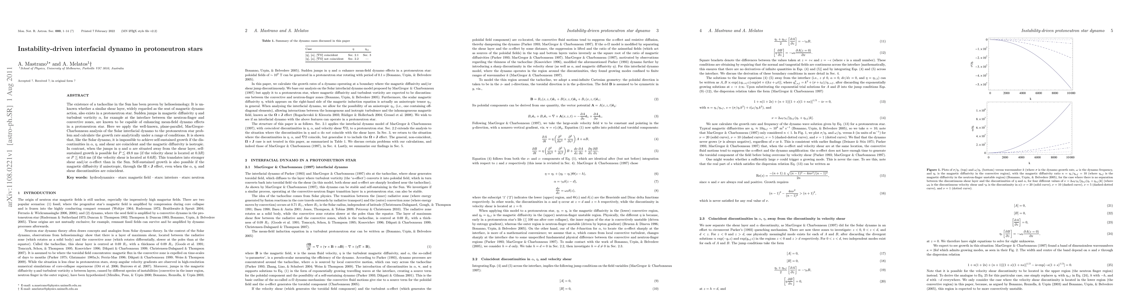 This paper explores the possibility of a magnetic dynamo in protoneutron stars driven by instabilities at the interface between different zones. It finds that self-sustained magnetic field growth is possible if discontinuities in magnetic diffusivity and vorticity are not aligned with the shear layer, or if the magnetic diffusivity is anisotropic, leading to stronger dynamo effects compared to the Sun.