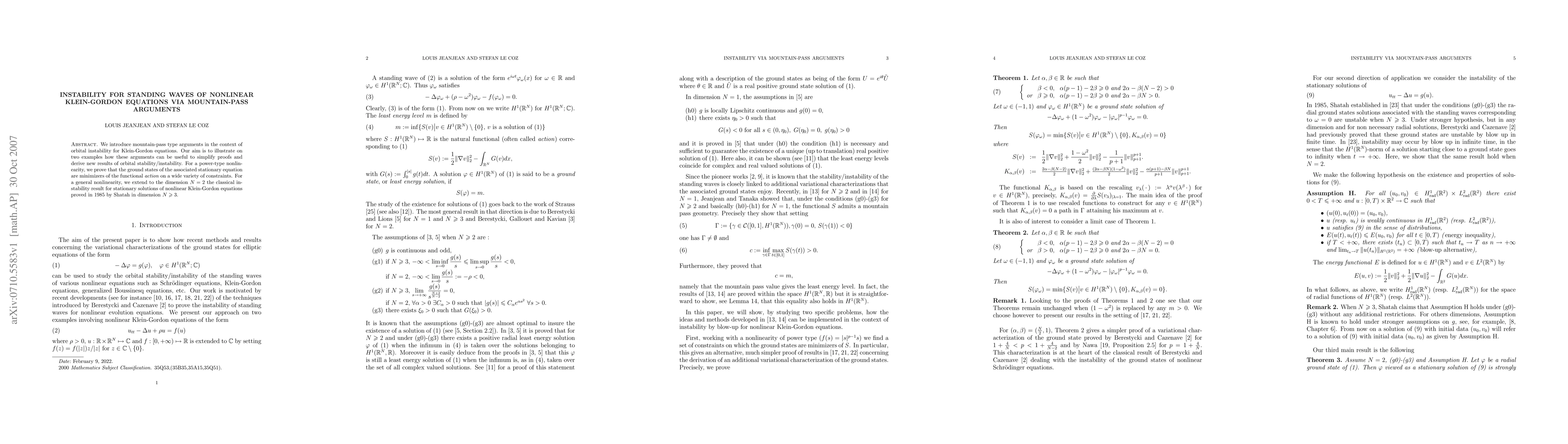 This research paper uses mountain-pass arguments to prove instability for standing waves of nonlinear Klein-Gordon equations in various dimensions.