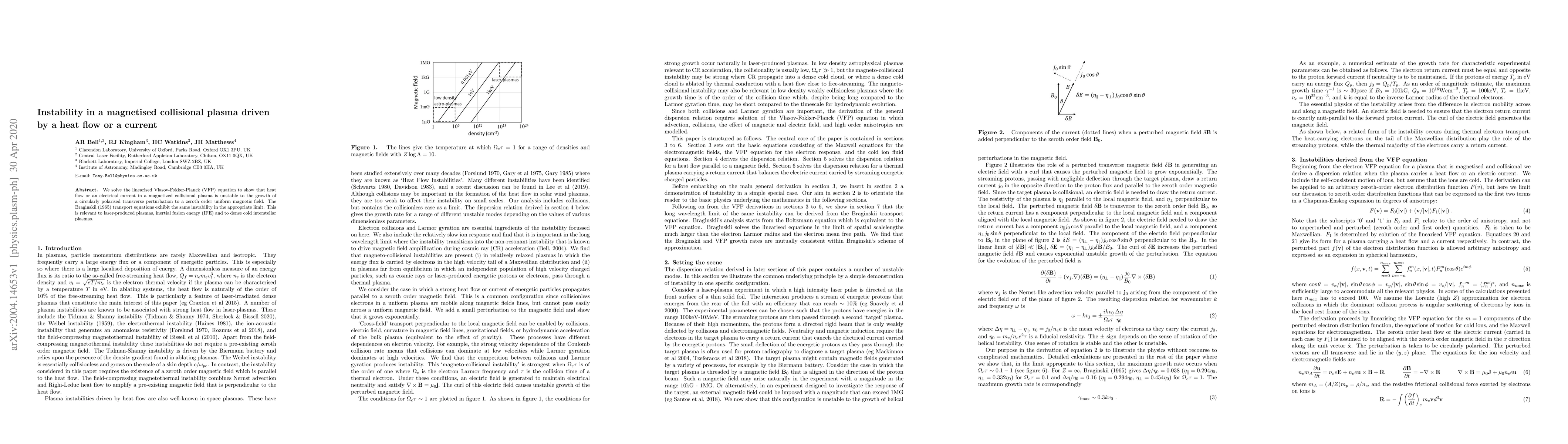 We solve the linearised Vlasov-Fokker-Planck (VFP) equation to show that heat flow or an electrical current in a magnetized collisional plasma is unstable to the growth of a circularly polarised transverse perturbation to a zeroth order uniform magnetic field. The Braginskii (1965) transport equations exhibit the same instability in the appropriate limit. This is relevant to laser-produced plasmas, inertial fusion energy (IFE) and to dense cold interstellar plasmas.