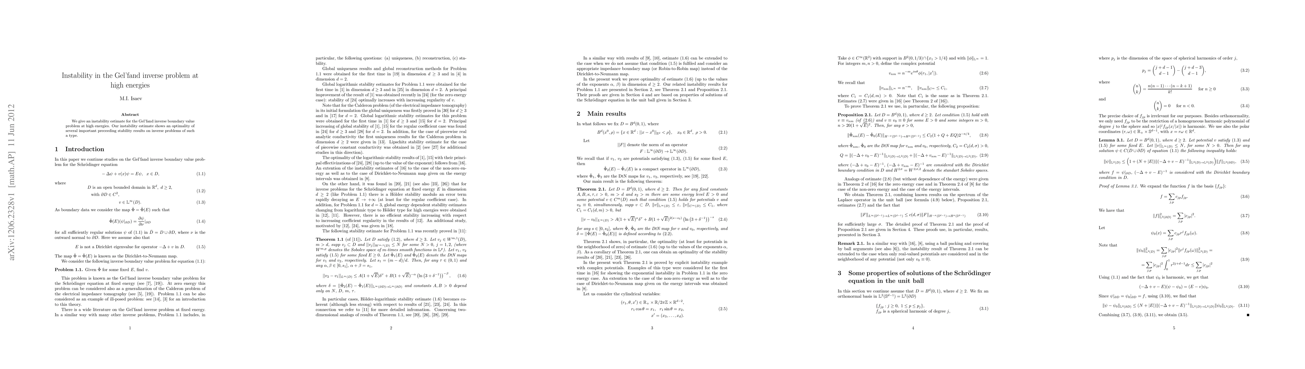 We give an instability estimate for the Gel'fand inverse boundary value problem at high energies. Our instability estimate shows an optimality of several important preceeding stability results on inverse problems of such a type.
