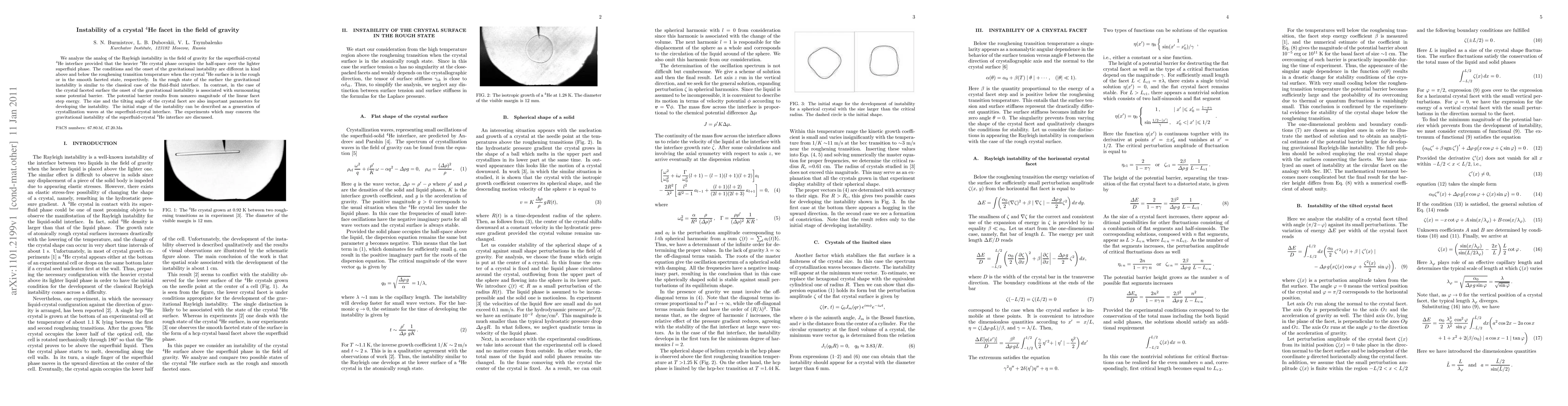 Researchers studied instability in a helium-4 crystal facet near its interface with superfluid 4He, finding it's affected by surface roughness and geometry, with different onset conditions above and below the roughening transition temperature.