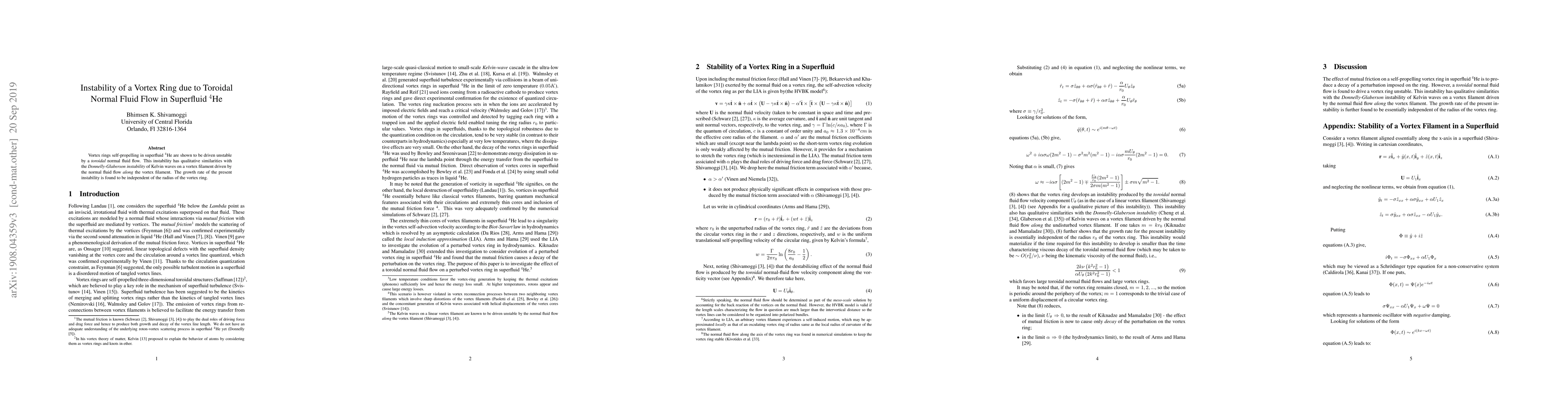 Summary: Vortex rings in superfluid 4He become unstable due to toroidal normal fluid flow, exhibiting an instability similar to the Donnelly-Glaberson instability, with the growth rate being radius-independent.