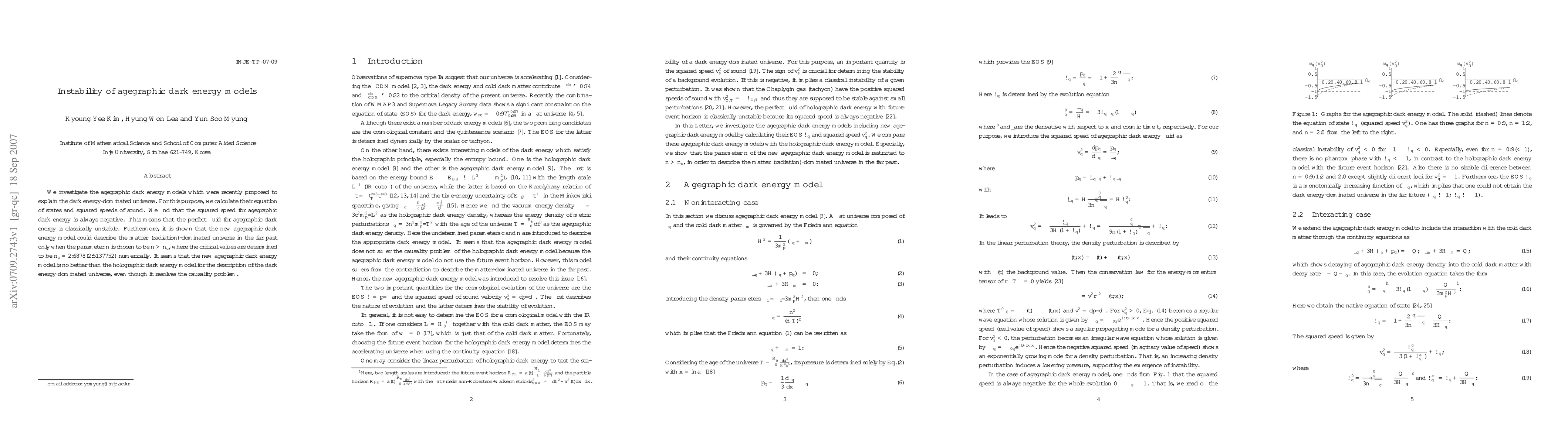 This paper examines agegraphic dark energy models, finding that they exhibit classical instability due to negative squared speeds of sound. The model can describe a matter-dominated universe in the past only under specific conditions, and it does not outperform holographic dark energy models.
