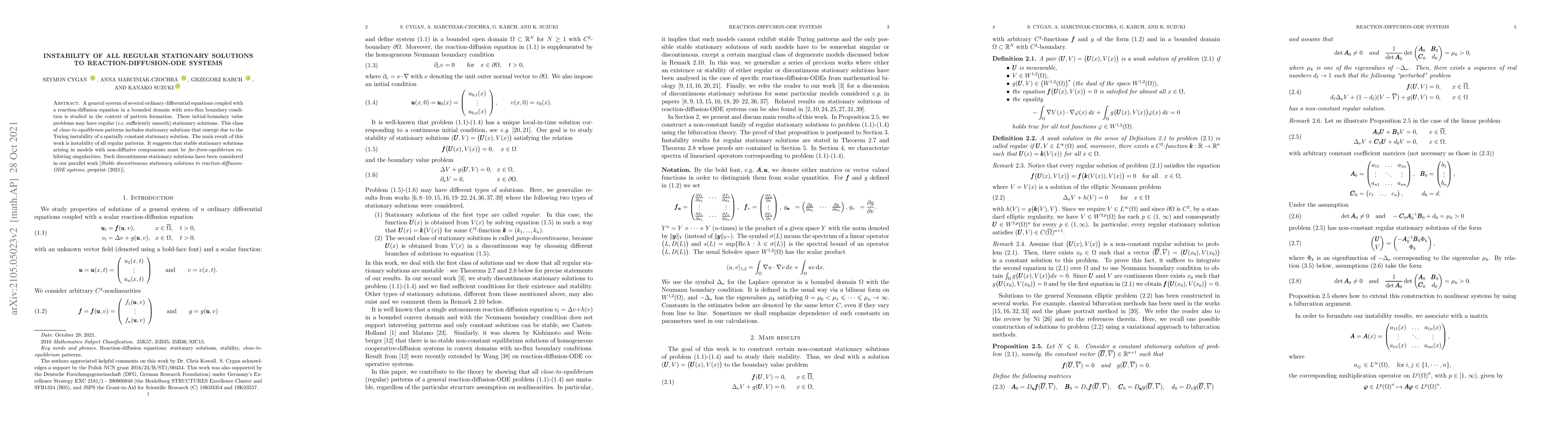 The main technical or theoretical contribution is the instability of all regular stationary solutions to reaction-diffusion-ODE systems.
