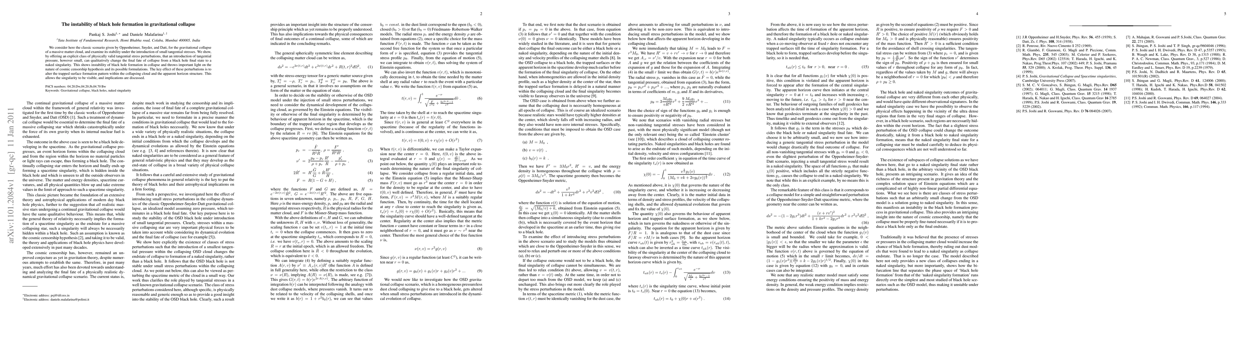 This research investigates the gravitational collapse leading to black hole formation, revealing that even minor tangential stresses can destabilize the process, potentially resulting in naked singularities instead. This finding challenges the cosmic censorship hypothesis and highlights the impact of tangential pressure on the trapped surface formation and apparent horizon structure.