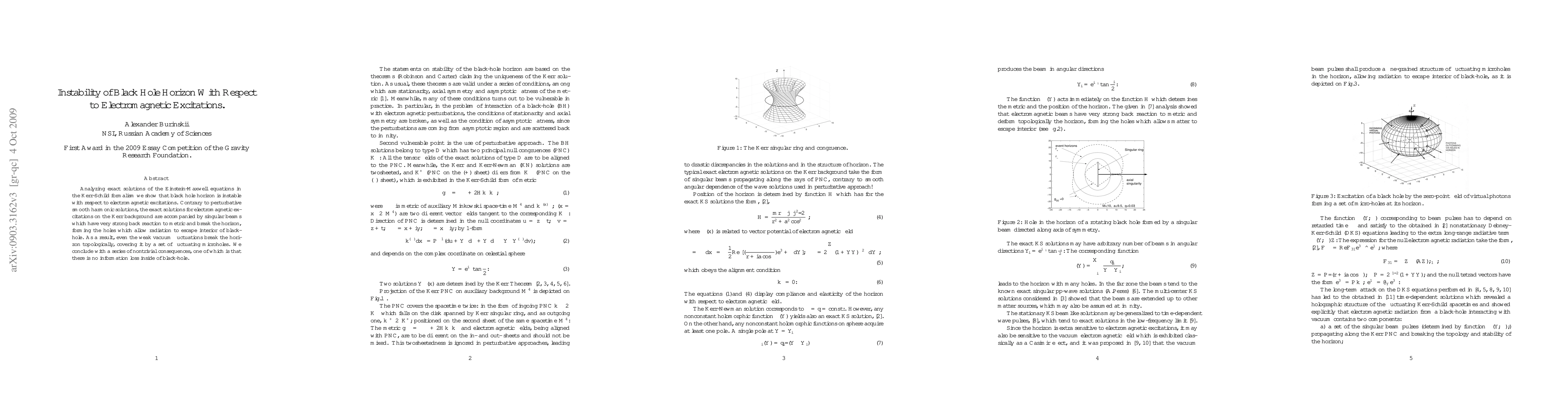 Analyzing exact solutions of the Einstein-Maxwell equations in the Kerr-Schild formalism we show that black hole horizon is instable with respect to electromagnetic excitations. Contrary to perturbative smooth harmonic solutions, the exact solutions for electromagnetic excitations on the Kerr background are accompanied by singular beams which have very strong back reaction to metric and break the horizon, forming the holes which allow radiation to escape interior of black-hole. As a result, even the weak vacuum fluctuations break the horizon topologically, covering it by a set of fluctuating microholes. We conclude with a series of nontrivial consequences, one of which is that there is no information loss inside of black-hole.