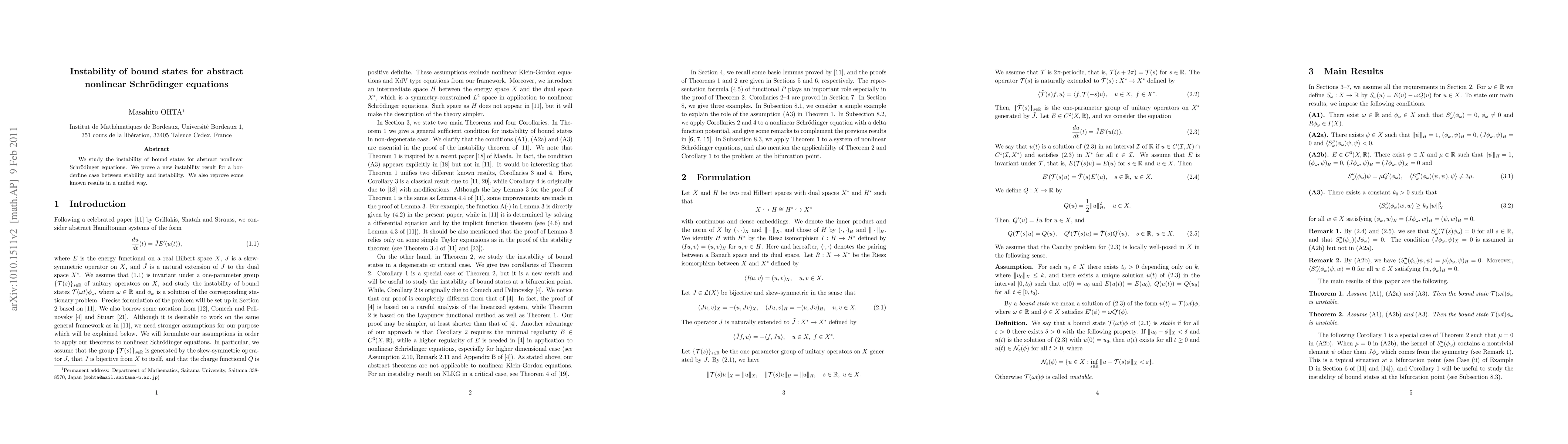 This paper investigates the instability of bound states in abstract nonlinear Schrödinger equations, proving a novel instability result for a critical case and presenting a unified approach to reprove existing findings.