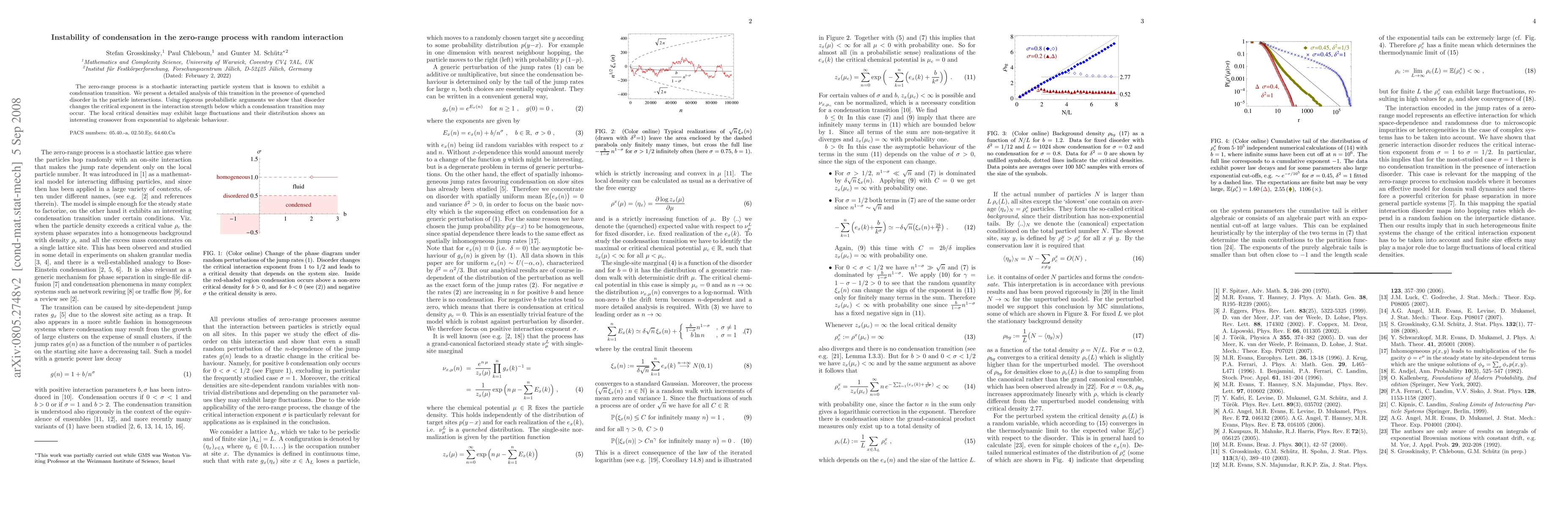 The zero-range process with random interactions undergoes a condensation transition, and we demonstrate that disorder alters the critical exponent for this transition. The local critical densities display significant fluctuations and transition from exponential to algebraic distribution behavior.