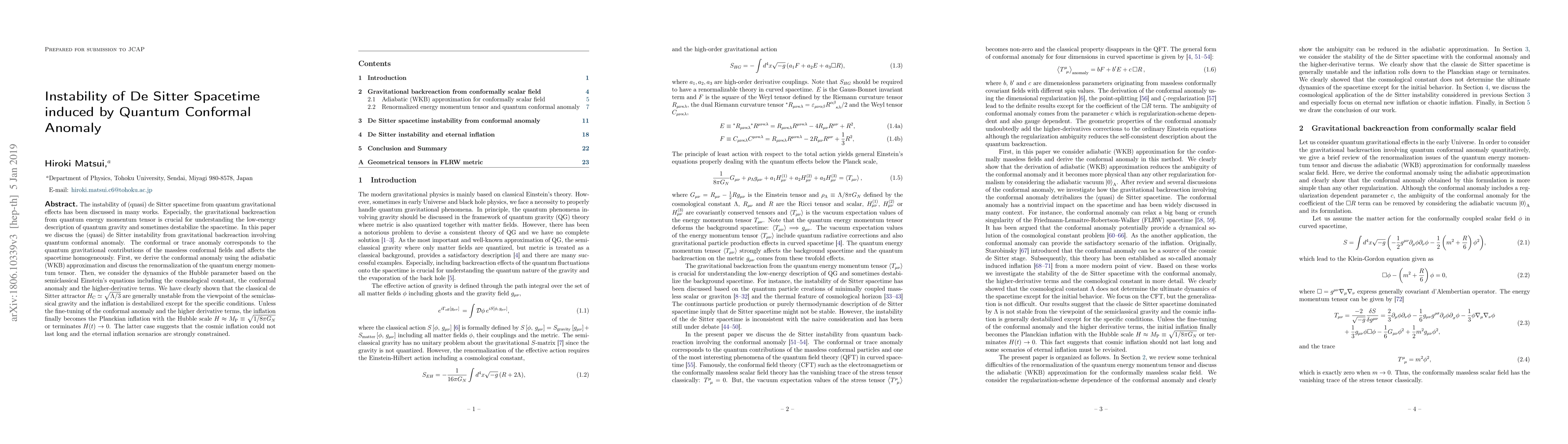 This paper explores the instability of de Sitter spacetime due to quantum gravitational effects, particularly focusing on the role of quantum conformal anomalies. It demonstrates that the classical de Sitter solution is generally unstable under semiclassical gravity, leading to either Planckian inflation or termination, thus constraining eternal inflation scenarios.