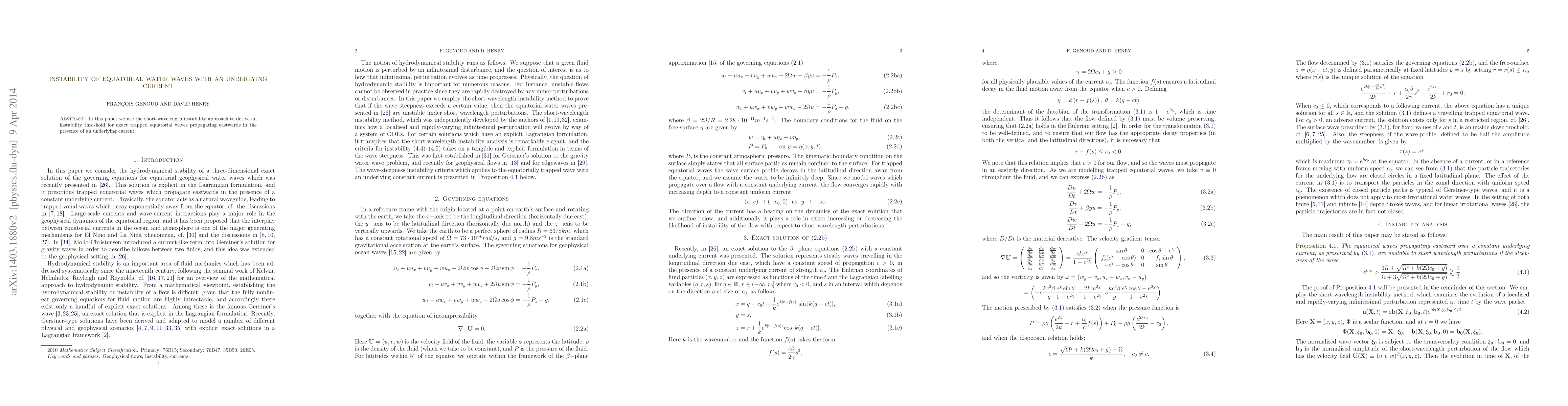 In this paper we use the short-wavelength instability approach to derive an instability threshold for exact trapped equatorial waves propagating eastwards in the presence of an underlying current.